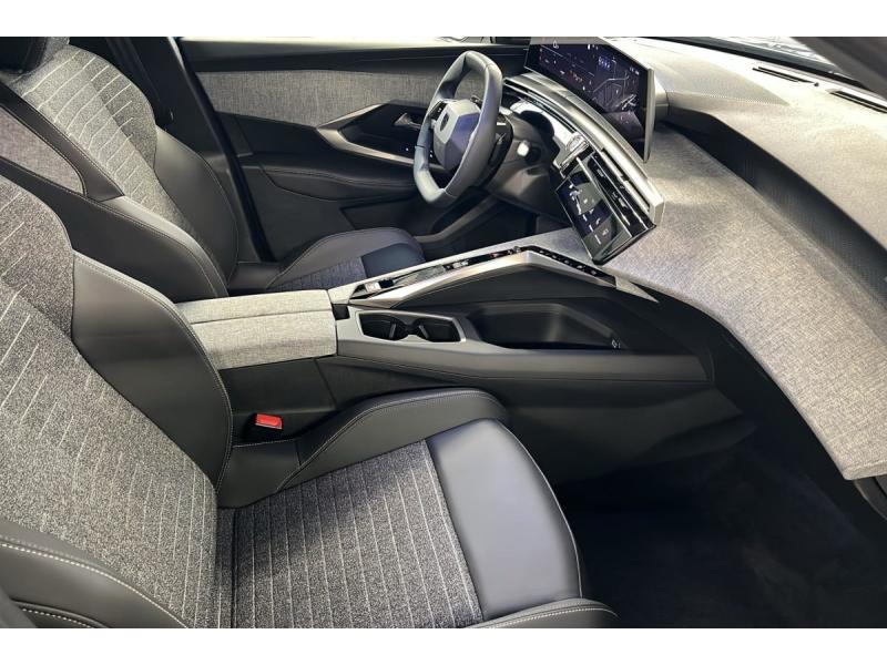 6 airbags: frontaux conducteur et passager auto-adaptatifs (passager neutralisable par clé), latéraux conducteur et passager AV (thorax et bassin), rideaux aux places AV et AR (tête et thorax)6 HP (2 tweeters et 2 woofers à l'AV et 2 larges bandes à l'AR)ABSAccès et démarrage mains libres ProximityAir conditionné automatique bi-zoneAllumage automatique des pharesBanquette AR avec dossier rabattable 40/20/40Boîte de vitesse automatique, séquentielle (6 rapports)Contrôle de tractionDétection de sous-gonflage indirecteDirection assistéeEclairage intérieur Plafonnier AV et liseuses AR à LED, Boite à gants et rangement de console éclairés à LED, Eclairage des caves à pieds AV à LEDESP avec aide au démarrage en penteEssuie-vitre AV à déclenchement automatiqueFeux AR 3 griffes à LEDFeux diurnes 3 griffes à LEDFixations ISOFIX et Top Tether aux places latérales ARFrein de stationnement électriqueJantes alliage 19"BredaLève-vitres AV/AR électriques et séquentiels avec antipincementPack Safety Plus : Alerte attention conducteur Reconnaissance étendue des panneaux de signalisation et préconisation de vitesse Alerte active de franchissement involontaire de ligne et bas côté Freinage d'urgence automatique avec alerte risque de collision pilot&eacuPare-brise feuilleté acoustiquePEUGEOT i-Connect Radio DAB, Bluetooth (connexion 2 téléphones), Mirror Screen sans fil (Apple CarPlay / Android Auto), Peugeot Connect SOS, 1 prise USB C (Data & charge)Plancher de coffre modulable 2 positionsProjecteurs "Peugeot Led Technology"Rétroviseur intérieur électrochromeSellerie tissu CRISPY embossé, accompagnement TEP Isabella, écharpe tissu RIMINI chiné, surpiqûres QuartzSièges AV à réglage en hauteur manuelVitres AV électriquesVolant compact croûte de cuir avec commandes intégrées Noir laqué, décors Gris Stène