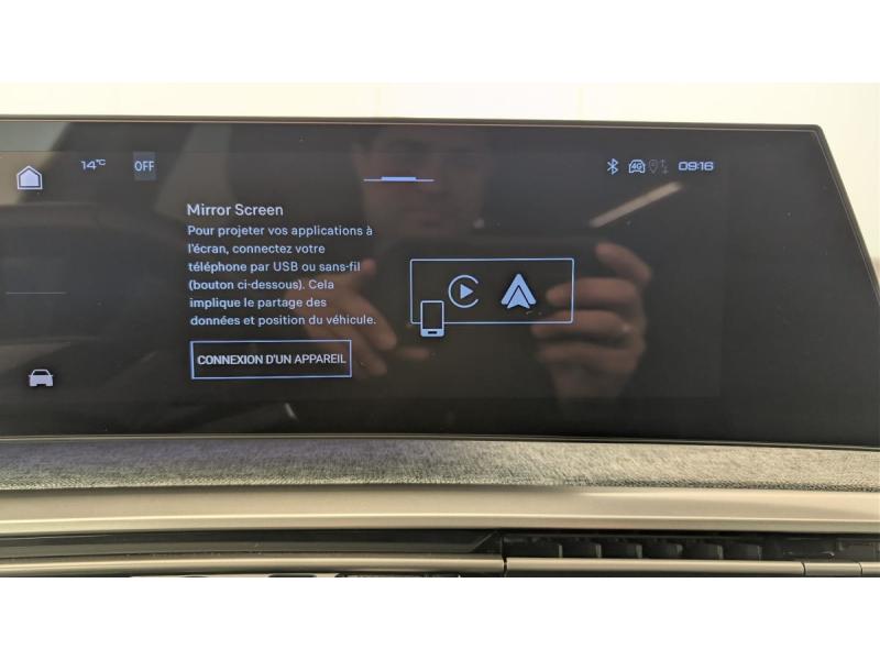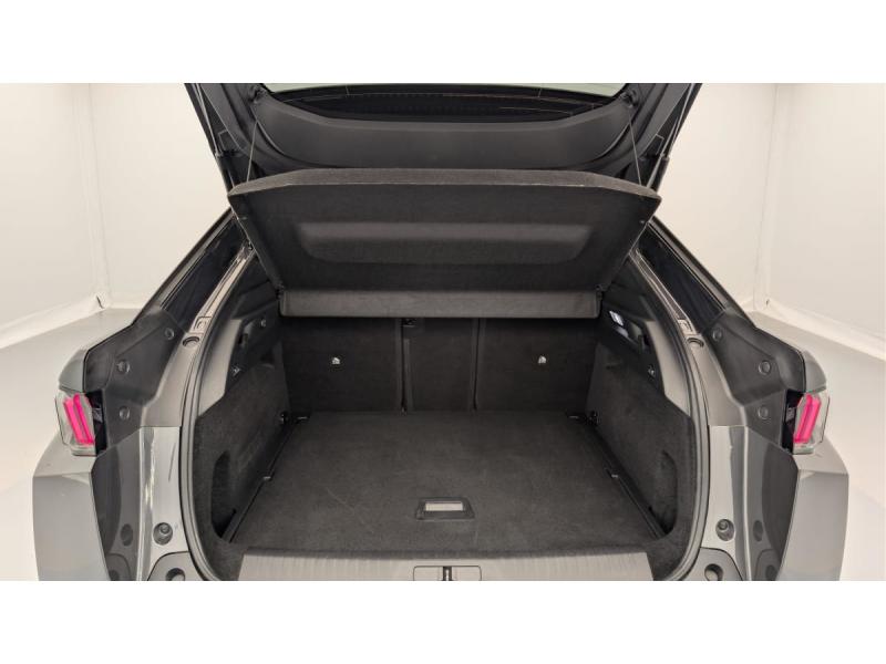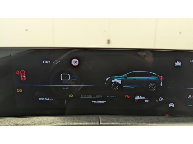 4 poignées de maintien rétractables (2 à l'AV et 2 à l'AR)6 airbags: frontaux conducteur et passager auto-adaptatifs (passager neutralisable par clé), latéraux conducteur et passager AV (thorax et bassin), rideaux aux places AV et AR (tête et thorax)6 HP (2 tweeters et 2 woofers à l'AV et 2 larges bandes à l'AR)Accès et démarrage mains libres ProximityAir conditionné automatique bi-zoneAllumage automatique des pharesBanquette AR avec dossier rabattable 40/20/40Détection de sous-gonflage indirecteEclairage intérieur Plafonnier AV et liseuses AR à LED, Boite à gants et rangement de console éclairés à LED, Eclairage des caves à pieds AV à LEDESP avec aide au démarrage en penteEssuie-vitre AV à déclenchement automatiqueFeux AR 3 griffes à LEDFeux diurnes 3 griffes à LEDFixations ISOFIX et Top Tether aux places latérales ARFrein de stationnement électriqueJantes alliage 19" diamantéesLève-vitres AV/AR électriques et séquentiels avec antipincementMirror Screen sans fil (Apple CarPlay / Android Auto)Pack Safety Plus : Régulateur / limiteur de vitesse Alerte attention conducteur Reconnaissance étendue des panneaux de signalisation et préconisation de vitesse Alerte active de franchissement involontaire de ligne et bas côté Freinage d'urgence automatique avPare-brise feuilleté acoustiquePEUGEOT i-Cockpit panoramique avec Double écran HD flottant (2 x 10'')Plancher de coffre modulable 2 positionsProjecteurs "Peugeot Led Technology"Rétroviseur intérieur électrochromeSellerie tissu CRISPY embossé, accompagnement TEP Isabella, écharpe tissu RIMINI chiné, surpiqûres QuartzSièges AV à réglage en hauteur manuelVisiopark 1 Caméra de recul et aide au stationnement AR, graphique et sonoreVitres AR, custodes et lunette AR teintées