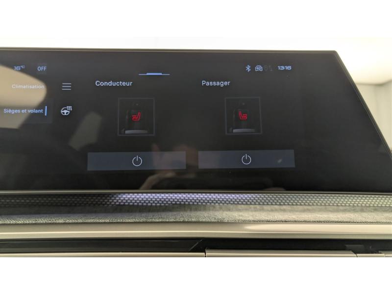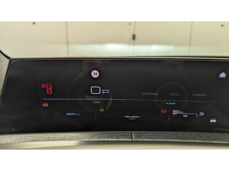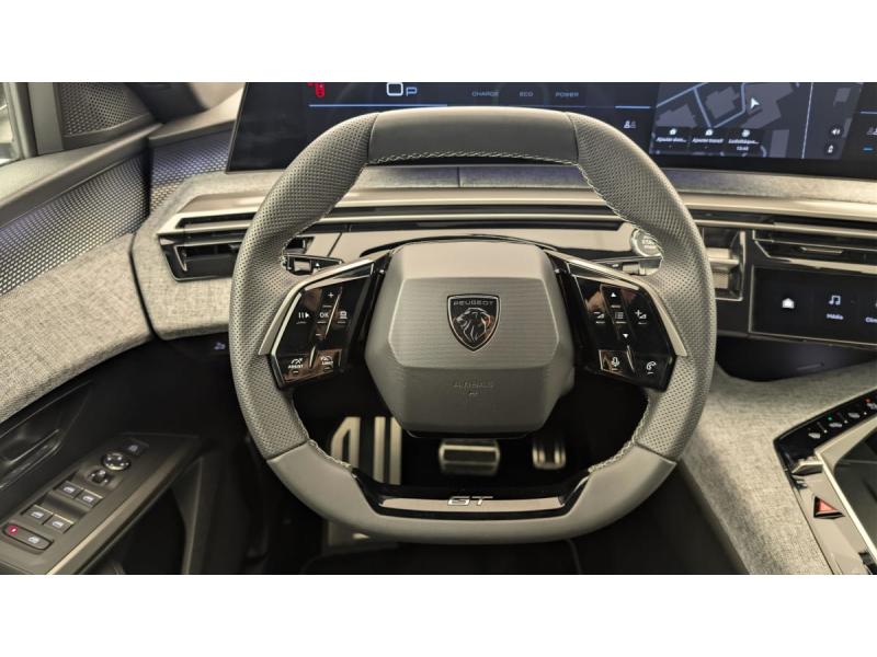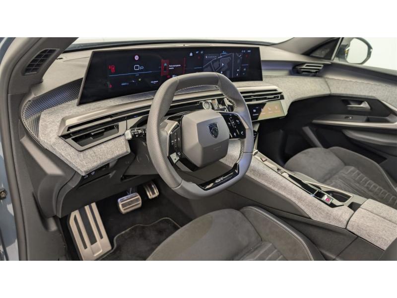 4 poignées de maintien rétractables (2 à l'AV et 2 à l'AR)6 airbags: frontaux conducteur et passager auto-adaptatifs (passager neutralisable par clé), latéraux conducteur et passager AV (thorax et bassin), rideaux aux places AV et AR (tête et thorax)6 HP (2 tweeters et 2 woofers à l'AV et 2 larges bandes à l'AR)ABSAccès et démarrage mains libres ProximityAir conditionné automatique bi-zoneAllumage automatique des pharesBanquette AR avec dossier rabattable 40/20/40 avec accoudoir centralBoîte de vitesse automatique, séquentielle (6 rapports)Commutation adaptative des projecteursCommutation automatique des feux de routeContrôle de tractionDétection de sous-gonflage indirecteDirection assistéeEclairage d'ambiance indirect, jour & nuit sur la planche de bord, les panneaux de portes AV et sous l'écran panoramique 21'', associé aux modes de conduite, personnalisable en 8 couleursEclairage intérieur Miroirs de courtoisie conducteur et passager occultables éclairés à LEDESP avec aide au démarrage en penteEssuie-vitre AV à déclenchement automatiqueFeux AR 3 griffes à LED 3DFeux diurnes 3 griffes à LEDFixations ISOFIX et Top Tether aux places latérales ARFrein de stationnement électriqueHayon motorisé avec accès mains libresJantes alliage 19" diamantées BREDA Noir Orbital, vernis brillantLève-vitres AV/AR électriques et séquentiels avec antipincementPédalier et repose pied aluminiumPack Safety Plus : Alerte attention conducteur Reconnaissance étendue des panneaux de signalisation et préconisation de vitesse Alerte active de franchissement involontaire de ligne et bas côté Freinage d'urgence automatique avec alerte risque de collision pilot&eacuPare-brise feuilleté acoustiquePEUGEOT i-Cockpit panoramique avec écran incurvé et flottant 21'' HDPEUGEOT i-Connect Advanced - Navigation 3D connectée, 4 prises USB: 1 prise USB C (Data & charge) et 1 prise USB C (Charge) à l'AV, 2 prises USB C (Charge) à l'AR - 2 prises 12 V (Console centrale, coffre)PEUGEOT i-Toggles virtuels avec 10 raccourcis personnalisablesPlancher de coffre modulable 2 positionsProjecteurs PEUGEOT PIXEL LED Eclairage adaptatif, commutation automatique des feux de route, feux de route avec fonctions anti éblouissement et boostRétroviseur intérieur électrochromeSeuil de portes AV inox avec lettrage PEUGEOTSiège conducteur à réglage lombaire manuelSièges AV chauffantsSièges AV massantsToit et becquet AR Black DiamondVerrouillage centraliséVolant chauffantVolant compact, cuir fleur lisse et perforé avec commandes intégrées Noir Laqué, décors Cast Iron, surpiqûres Iced Clay, insert Noir laqué avec badge ‘GT’
