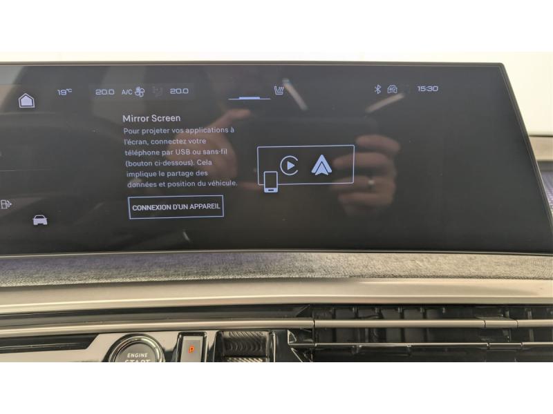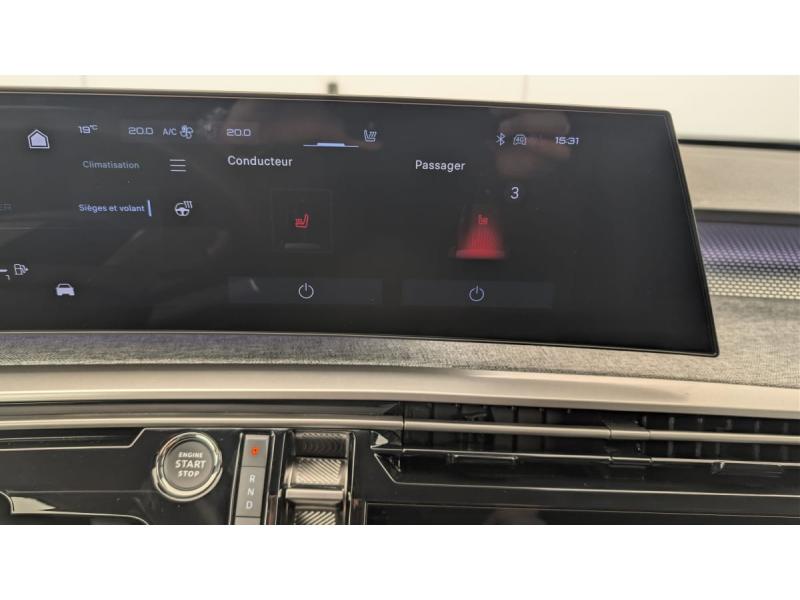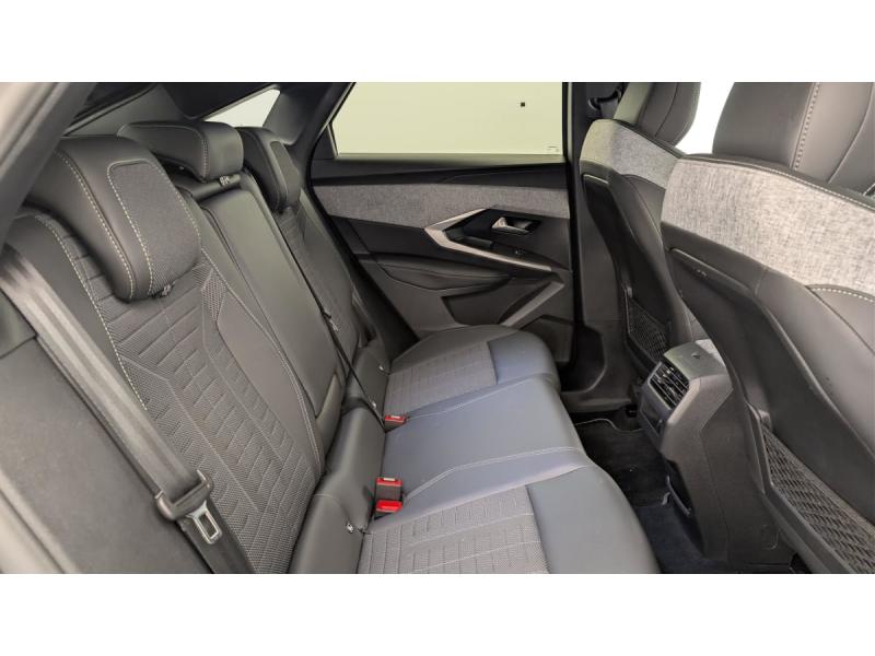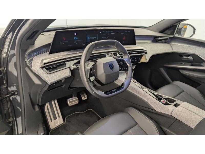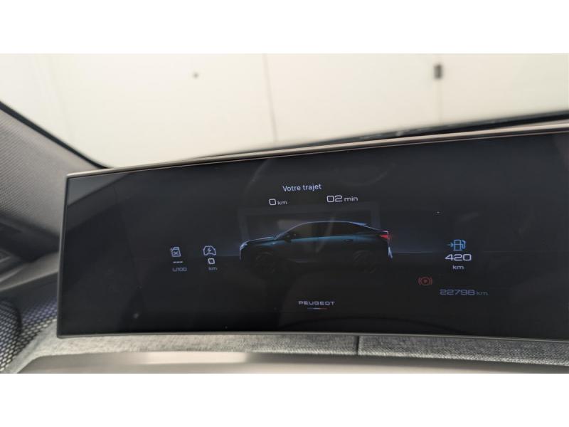 4 poignées de maintien rétractables (2 à l'AV et 2 à l'AR)6 airbags: frontaux conducteur et passager auto-adaptatifs (passager neutralisable par clé), latéraux conducteur et passager AV (thorax et bassin), rideaux aux places AV et AR (tête et thorax)6 HP (2 tweeters et 2 woofers à l'AV et 2 larges bandes à l'AR)Accès et démarrage mains libres ProximityAccoudoir centralAir conditionné automatique bi-zoneAllumage automatique des pharesBanquette AR avec dossier rabattable 40/20/40Commutation adaptative des projecteursDétection de sous-gonflage indirecteDrive Assist - Régulateur de vitesse adaptatif avec fonction Stop & GoEclairage d'ambiance indirect, jour & nuit sur la planche de bord, les panneaux de portes AV et sous l'écran panoramique 21'', associé aux modes de conduite, personnalisable en 8 couleursEclairage intérieur Miroirs de courtoisie conducteur et passager occultables éclairés à LED, Plafonnier AV et lisseuses AR i-DOME tactiles à LEDESP avec aide au démarrage en penteEssuie-vitre AV à déclenchement automatiqueFeux AR 3 griffes à LED 3DFeux diurnes 3 griffes à LEDFixations ISOFIX et Top Tether aux places latérales ARFrein de stationnement électriqueHayon motorisé avec accès mains libresJantes alliage 19" diamantéesLève-vitres AV/AR électriques et séquentiels avec antipincementPédalier et repose pied aluminiumPack Safety Plus : Alerte attention conducteur Reconnaissance étendue des panneaux de signalisation et préconisation de vitesse Alerte active de franchissement involontaire de ligne et bas côté Freinage d'urgence automatique avec alerte risque de collision pilot&eacuPare-brise feuilleté acoustiquePEUGEOT i-Cockpit panoramique avec écran incurvé et flottant 21 HDPEUGEOT i-Connect Advanced Navigation 3D connectée, Mirror Link, 4 prises USB: 1 prise USB C (Data & charge) et 1 prise USB C (Charge) à l'AV, 2 prises USB C (Charge) à l'ARPEUGEOT i-Toggles virtuels avec 10 raccourcis personnalisablesPlancher de coffre modulable 2 positionsProjecteurs PEUGEOT PIXEL LED Eclairage adaptatif, commutation automatique des feux de route, feux de route avec fonctions anti éblouissement et boostSellerie tissu NEW UZIRIS embossé, accompagnement TEP Isabella, écharpe tissu RIMINI chiné, surpiqûres Iced ClaySiège conducteur à réglage lombaire manuelSièges AV à réglage en hauteur manuelSièges AV chauffantsToit et becquet AR Black DiamondVitres AR, custodes et lunette AR teintéesVolant chauffantVolant compact, cuir fleur lisse et perforé avec commandes intégrées Noir Laqué, décors Cast Iron, surpiqûres Iced Clay, insert Noir laqué avec badge GT