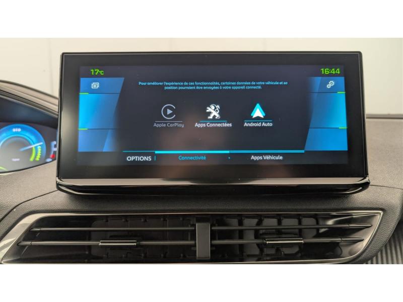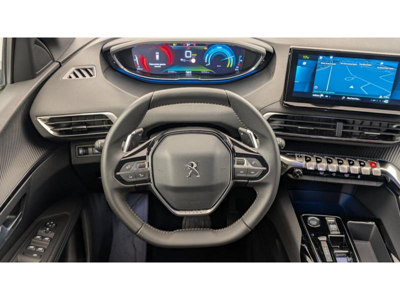 6 airbags (Frontaux adaptatifs, latéraux AV, rideaux AV/AR)Accès et démarrage mains libresAccoudoir central AV à ouverture papillon, avec compartiment de rangement éclairé et réfrigérableAir conditionné automatique bi-zone avec aérateurs aux places ARAppuis-tête à sécurité optimisée réglables en hauteur (conducteur, passager et AR x3)Avertisseur de temps de conduiteAvertisseur sonore audible depuis l'extérieur pour la sécurité piétonsBanquette AR rabattable 1/3 - 2/3 avec accoudoir centralCâble de recharge T2 mode 2 (10 A / 2,3 kW)Calandre á damiers chromésCoques de rétroviseurs extérieurs Noir Perla NeraDétection de sous-gonflage indirecteDirection assistée électrique, colonne de direction réglable en hauteur et profondeur (mécanique)Enjoliveur d'arc de pavillon en Inox BrillantEnjoliveurs d'ailes AV chromésFeux AR à LED avec effet 3D, clignotants à défilementFixations ISOFIX (passager AV et aux places latérales AR)Fonction "Mirror Screen" (Apple CarPlay / Android Auto )Frein de stationnement électrique avec aide au démarrage en pente et serrage automatiqueGarnissage TEP avec Tissu Colyn MistralJantes alliage 18" diamantées DETROIT bi-ton Gris Storm brillant avec pneumatiques 225/55 R18 102 VKit de dépannage de pneumatiqueLève-vitres AV/AR électriques et séquentiels avec antipincementNavigation 3D connectée avec écran tactile capacitif 10" HDPack City : Aide graphique et sonore au stationnement AR Visiopark 1 : caméra de recul avec restitution sur l'écran tactile d'une vue AR et d'une vue de dessus de l'environnement AR du véhiculePack Safety Plus : Alerte Risque de Collision (Distance Alert) Alerte attention conducteur Commutation automatique des feux de route / feux de croisement Alerte active de franchissement involontaire de ligne et bas côté Freinage d'urgence automatique avec caméra & radarPack Visibilité : Eclairage d'accompagnement automatique Allumage automatique des feux de croisement Essuie-vitre AV à déclenchement automatiquePares-soleil avec miroirs de courtoisie éclairésPassages de roues rapportés Noir MatPEUGEOT Connect SOSPeugeot i-Cockpit avec combiné tête haute numérique, volant compact multi-fonctionsPlafonniers AV/AR à LED avec 2 spots de lecturePlancher de coffre fixe avec articulation pour accès au coffre de rangement du câble de rechargePoches/filets aumonières au dos des sièges AVPrise 12 V (x3 : zone connectique, AR de console et coffre)Projecteurs "Peugeot LED Technology" avec feux diurnes à LED sous projecteursRétroviseur intérieur photosensibleRétroviseurs extérieurs dégivrants avec réglage et rabattement électriquesReconnaissance étendue des panneaux de signalisationSécurité enfants électrique des vitres ARSélecteur de modes de conduite (Electric, Hybrid, Sport)Sièges AV réglables en hauteurVitres latérales AR et lunette AR chauffante surteintées