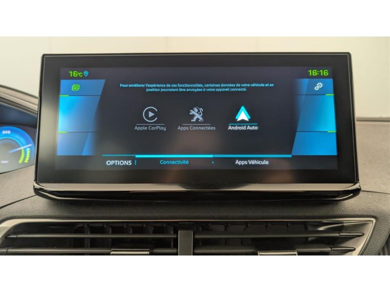 6 airbags (Frontaux adaptatifs, latéraux AV, rideaux AV/AR)Accès et démarrage mains libresAccoudoir central AV à ouverture papillon, avec compartiment de rangement éclairé et réfrigérableAir conditionné automatique bi-zone avec aérateurs aux places ARAppuis-tête à sécurité optimisée réglables en hauteur (conducteur, passager et AR x3)Avertisseur de temps de conduiteAvertisseur sonore audible depuis l'extérieur pour la sécurité piétonsBanquette AR rabattable 1/3 - 2/3 avec accoudoir centralCâble de recharge T2 mode 2 (10 A / 2,3 kW)Calandre á damiers chromésCoques de rétroviseurs extérieurs Noir Perla NeraDétection de sous-gonflage indirecteDirection assistée électrique, colonne de direction réglable en hauteur et profondeur (mécanique)Enjoliveur d'arc de pavillon en Inox BrillantEnjoliveurs d'ailes AV chromésFeux AR à LED avec effet 3D, clignotants à défilementFixations ISOFIX (passager AV et aux places latérales AR)Fonction "Mirror Screen" (Apple CarPlay / Android Auto )Frein de stationnement électrique avec aide au démarrage en pente et serrage automatiqueGarnissage TEP avec Tissu Colyn MistralJantes alliage 18" diamantées DETROIT bi-ton Gris Storm brillant avec pneumatiques 225/55 R18 102 VKit de dépannage de pneumatiqueLève-vitres AV/AR électriques et séquentiels avec antipincementNavigation 3D connectée avec écran tactile capacitif 10" HDPack City : Aide graphique et sonore au stationnement AR Visiopark 1 : caméra de recul avec restitution sur l'écran tactile d'une vue AR et d'une vue de dessus de l'environnement AR du véhiculePack Safety Plus : Alerte Risque de Collision (Distance Alert) Alerte attention conducteur Commutation automatique des feux de route / feux de croisement Alerte active de franchissement involontaire de ligne et bas côté Freinage d'urgence automatique avec caméra & radarPack Visibilité : Eclairage d'accompagnement automatique Allumage automatique des feux de croisement Essuie-vitre AV à déclenchement automatiquePares-soleil avec miroirs de courtoisie éclairésPassages de roues rapportés Noir MatPEUGEOT Connect SOSPeugeot i-Cockpit avec combiné tête haute numérique, volant compact multi-fonctionsPlafonniers AV/AR à LED avec 2 spots de lecturePlancher de coffre fixe avec articulation pour accès au coffre de rangement du câble de rechargePoches/filets aumonières au dos des sièges AVPrise 12 V (x3 : zone connectique, AR de console et coffre)Projecteurs "Peugeot LED Technology" avec feux diurnes à LED sous projecteursRétroviseur intérieur photosensibleRétroviseurs extérieurs dégivrants avec réglage et rabattement électriquesReconnaissance étendue des panneaux de signalisationSécurité enfants électrique des vitres ARSélecteur de modes de conduite (Electric, Hybrid, Sport)Sièges AV réglables en hauteurTeintes métalliséesVitres latérales AR et lunette AR chauffante surteintées