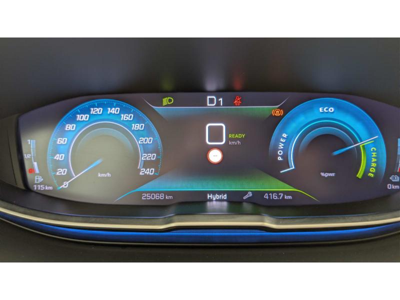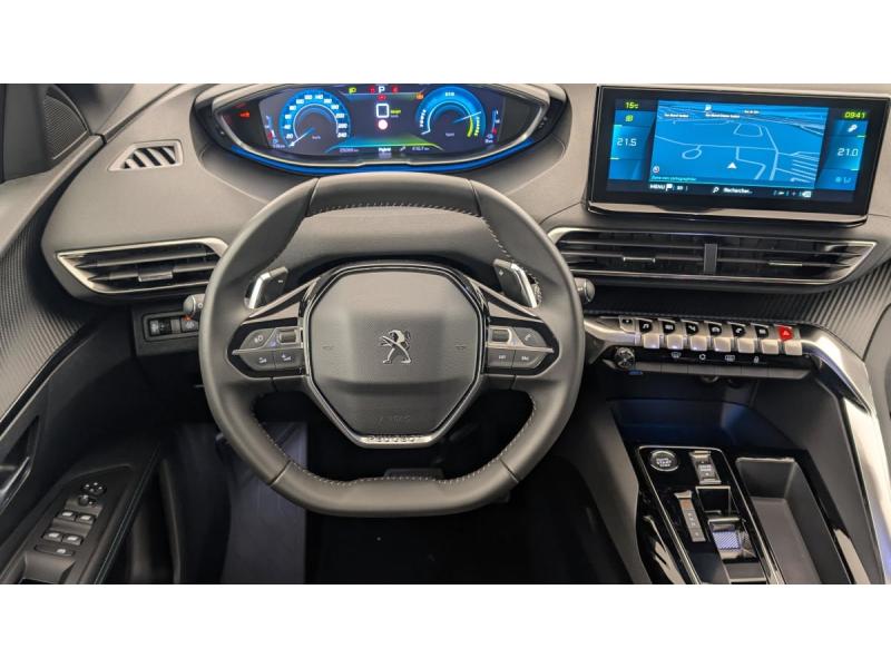 6 airbags (Frontaux adaptatifs, latéraux AV, rideaux AV/AR)Accès et démarrage mains libresAccoudoir central AV à ouverture papillon, avec compartiment de rangement éclairé et réfrigérableAir conditionné automatique bi-zone avec aérateurs aux places ARAppuis-tête à sécurité optimisée réglables en hauteur (conducteur, passager et AR x3)Avertisseur de temps de conduiteAvertisseur sonore audible depuis l'extérieur pour la sécurité piétonsBanquette AR rabattable 1/3 - 2/3 avec accoudoir centralCâble de recharge T2 mode 2 (10 A / 2,3 kW)Calandre á damiers chromésCoques de rétroviseurs extérieurs Noir Perla NeraDétection de sous-gonflage indirecteDirection assistée électrique, colonne de direction réglable en hauteur et profondeur (mécanique)Enjoliveur d'arc de pavillon en Inox BrillantEnjoliveurs d'ailes AV chromésFeux AR à LED avec effet 3D, clignotants à défilementFixations ISOFIX (passager AV et aux places latérales AR)Fonction "Mirror Screen" (Apple CarPlay / Android Auto )Frein de stationnement électrique avec aide au démarrage en pente et serrage automatiqueGarnissage TEP avec Tissu Colyn MistralKit de dépannage de pneumatiqueLève-vitres AV/AR électriques et séquentiels avec antipincementNavigation 3D connectée avec écran tactile capacitif 10" HDPack City : Aide graphique et sonore au stationnement AR Visiopark 1 : caméra de recul avec restitution sur l'écran tactile d'une vue AR et d'une vue de dessus de l'environnement AR du véhiculePack Safety Plus : Alerte Risque de Collision (Distance Alert) Alerte attention conducteur Commutation automatique des feux de route / feux de croisement Alerte active de franchissement involontaire de ligne et bas côté Freinage d'urgence automatique avec caméra & radarPack Visibilité : Eclairage d'accompagnement automatique Allumage automatique des feux de croisement Essuie-vitre AV à déclenchement automatiquePares-soleil avec miroirs de courtoisie éclairésPassages de roues rapportés Noir MatPEUGEOT Connect SOSPeugeot i-Cockpit avec combiné tête haute numérique, volant compact multi-fonctionsPlafonniers AV/AR à LED avec 2 spots de lecturePlancher de coffre fixe avec articulation pour accès au coffre de rangement du câble de rechargePoches/filets aumonières au dos des sièges AVPrise 12 V (x3 : zone connectique, AR de console et coffre)Projecteurs "Peugeot LED Technology" avec feux diurnes à LED sous projecteursRétroviseur intérieur photosensibleRétroviseurs extérieurs dégivrants avec réglage et rabattement électriquesReconnaissance étendue des panneaux de signalisationSécurité enfants électrique des vitres ARSélecteur de modes de conduite (Electric, Hybrid, Sport)Sièges AV réglables en hauteurVitres latérales AR et lunette AR chauffante surteintées