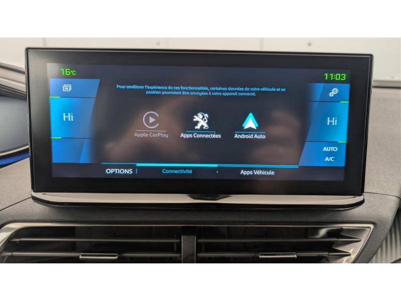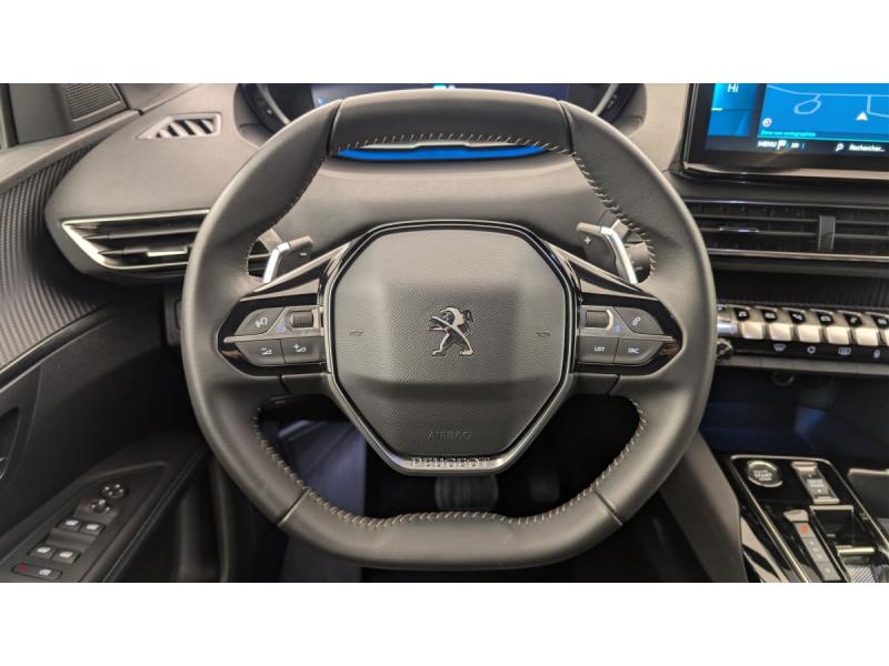 6 airbags (Frontaux adaptatifs, latéraux AV, rideaux AV/AR)Accès et démarrage mains libresAccoudoir central AV à ouverture papillon, avec compartiment de rangement éclairé et réfrigérableAir conditionné automatique bi-zone avec aérateurs aux places ARAppuis-tête à sécurité optimisée réglables en hauteur (conducteur, passager et AR x3)Avertisseur de temps de conduiteAvertisseur sonore audible depuis l'extérieur pour la sécurité piétonsBanquette AR rabattable 1/3 - 2/3 avec accoudoir centralCâble de recharge T2 mode 2 (10 A / 2,3 kW)Calandre á damiers chromésCoques de rétroviseurs extérieurs Noir Perla NeraDétection de sous-gonflage indirecteDirection assistée électrique, colonne de direction réglable en hauteur et profondeur (mécanique)Enjoliveur d'arc de pavillon en Inox BrillantEnjoliveurs d'ailes AV chromésFeux AR à LED avec effet 3D, clignotants à défilementFixations ISOFIX (passager AV et aux places latérales AR)Fonction "Mirror Screen" (Apple CarPlay / Android Auto )Frein de stationnement électrique avec aide au démarrage en pente et serrage automatiqueGarnissage TEP avec Tissu Colyn MistralJantes alliage 18" diamantées DETROIT bi-ton Gris Storm brillant avec pneumatiques 225/55 R18 102 VKit de dépannage de pneumatiqueLève-vitres AV/AR électriques et séquentiels avec antipincementNavigation 3D connectée avec écran tactile capacitif 10" HDPack City : Aide graphique et sonore au stationnement AR Visiopark 1 : caméra de recul avec restitution sur l'écran tactile d'une vue AR et d'une vue de dessus de l'environnement AR du véhiculePack Safety Plus : Alerte Risque de Collision (Distance Alert) Alerte attention conducteur Commutation automatique des feux de route / feux de croisement Alerte active de franchissement involontaire de ligne et bas côté Freinage d'urgence automatique avec caméra & radarPack Visibilité : Eclairage d'accompagnement automatique Allumage automatique des feux de croisement Essuie-vitre AV à déclenchement automatiquePares-soleil avec miroirs de courtoisie éclairésPassages de roues rapportés Noir MatPEUGEOT Connect SOSPeugeot i-Cockpit avec combiné tête haute numérique, volant compact multi-fonctionsPlafonniers AV/AR à LED avec 2 spots de lecturePlancher de coffre fixe avec articulation pour accès au coffre de rangement du câble de rechargePoches/filets aumonières au dos des sièges AVPrise 12 V (x3 : zone connectique, AR de console et coffre)Projecteurs "Peugeot LED Technology" avec feux diurnes à LED sous projecteursRétroviseur intérieur photosensibleRétroviseurs extérieurs dégivrants avec réglage et rabattement électriquesReconnaissance étendue des panneaux de signalisationSécurité enfants électrique des vitres ARSélecteur de modes de conduite (Electric, Hybrid, Sport)Sièges AV réglables en hauteurTeintes métalliséesVitres latérales AR et lunette AR chauffante surteintées
