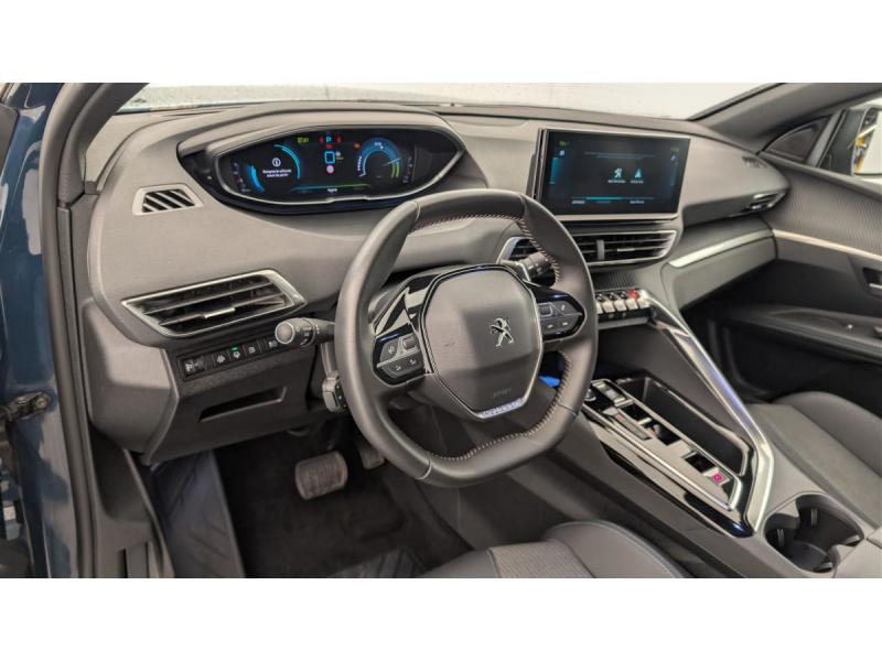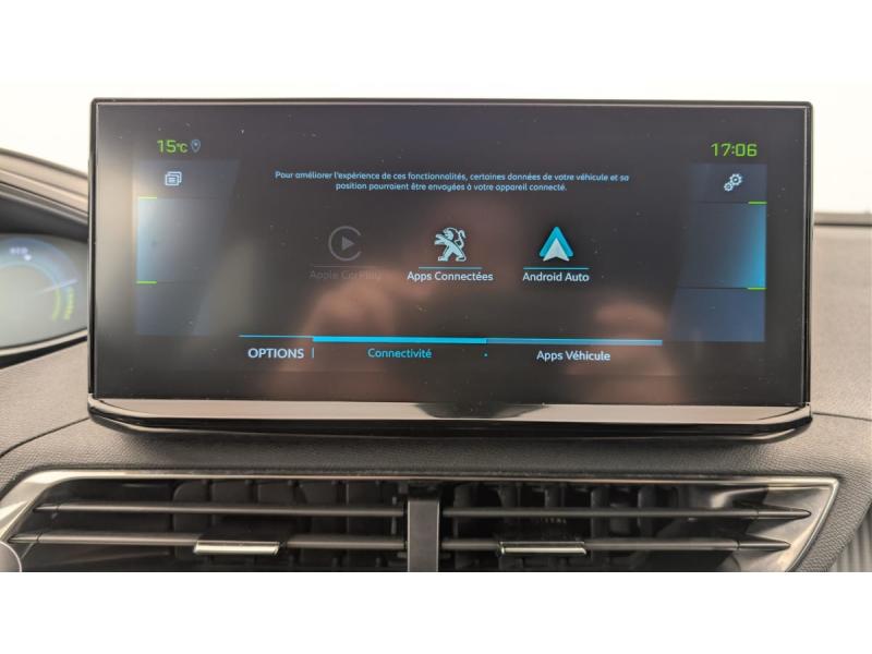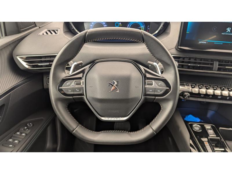 6 airbags (Frontaux adaptatifs, latéraux AV, rideaux AV/AR)Accès et démarrage mains libresAccoudoir central AV à ouverture papillon, avec compartiment de rangement éclairé et réfrigérableAir conditionné automatique bi-zone avec aérateurs aux places ARAppuis-tête à sécurité optimisée réglables en hauteur (conducteur, passager et AR x3)Avertisseur de temps de conduiteAvertisseur sonore audible depuis l'extérieur pour la sécurité piétonsBanquette AR rabattable 1/3 - 2/3 avec accoudoir centralCâble de recharge T2 mode 2 (10 A / 2,3 kW)Calandre á damiers chromésCoques de rétroviseurs extérieurs Noir Perla NeraDétection de sous-gonflage indirecteDirection assistée électrique, colonne de direction réglable en hauteur et profondeur (mécanique)Enjoliveur d'arc de pavillon en Inox BrillantEnjoliveurs d'ailes AV chromésFeux AR à LED avec effet 3D, clignotants à défilementFixations ISOFIX (passager AV et aux places latérales AR)Fonction "Mirror Screen" (Apple CarPlay / Android Auto )Frein de stationnement électrique avec aide au démarrage en pente et serrage automatiqueGarnissage TEP avec Tissu Colyn MistralKit de dépannage de pneumatiqueLève-vitres AV/AR électriques et séquentiels avec antipincementNavigation 3D connectée avec écran tactile capacitif 10" HDPack City : Aide graphique et sonore au stationnement AR Visiopark 1 : caméra de recul avec restitution sur l'écran tactile d'une vue AR et d'une vue de dessus de l'environnement AR du véhiculePack Safety Plus : Alerte Risque de Collision (Distance Alert) Alerte attention conducteur Commutation automatique des feux de route / feux de croisement Alerte active de franchissement involontaire de ligne et bas côté Freinage d'urgence automatique avec caméra & radarPack Visibilité : Eclairage d'accompagnement automatique Allumage automatique des feux de croisement Essuie-vitre AV à déclenchement automatiquePares-soleil avec miroirs de courtoisie éclairésPassages de roues rapportés Noir MatPEUGEOT Connect SOSPeugeot i-Cockpit avec combiné tête haute numérique, volant compact multi-fonctionsPlafonniers AV/AR à LED avec 2 spots de lecturePlancher de coffre fixe avec articulation pour accès au coffre de rangement du câble de rechargePoches/filets aumonières au dos des sièges AVPrise 12 V (x3 : zone connectique, AR de console et coffre)Projecteurs "Peugeot LED Technology" avec feux diurnes à LED sous projecteursRétroviseur intérieur photosensibleRétroviseurs extérieurs dégivrants avec réglage et rabattement électriquesReconnaissance étendue des panneaux de signalisationSécurité enfants électrique des vitres ARSélecteur de modes de conduite (Electric, Hybrid, Sport)Sièges AV réglables en hauteurTeintes métalliséesTrappe de recharge électrique avec indicateur d'état de chargeVitres latérales AR et lunette AR chauffante surteintées