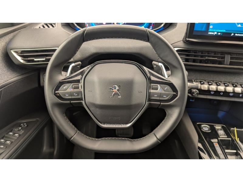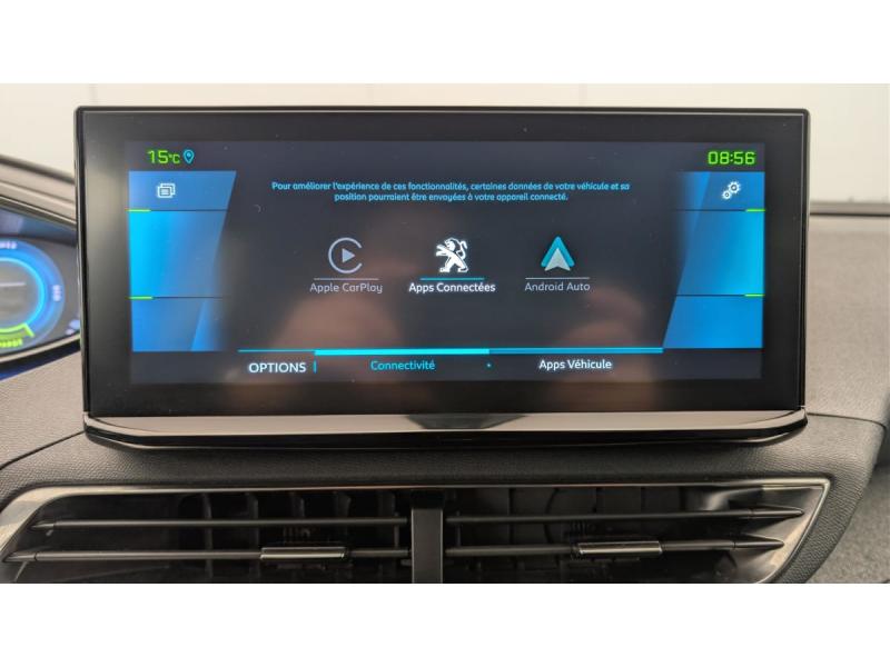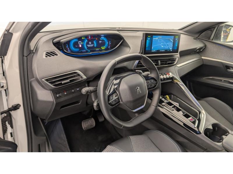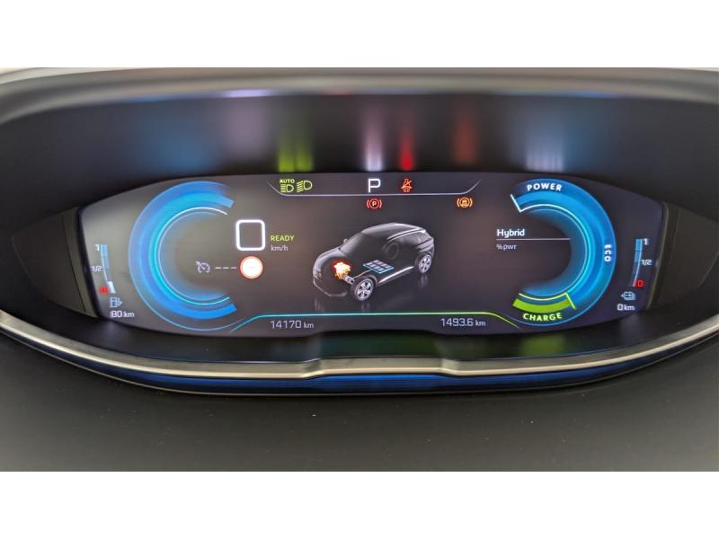 6 airbags (Frontaux adaptatifs, latéraux AV, rideaux AV/AR)Accès et démarrage mains libresAccoudoir central AV à ouverture papillon, avec compartiment de rangement éclairé et réfrigérableAir conditionné automatique bi-zone avec aérateurs aux places ARAppuis-tête à sécurité optimisée réglables en hauteur (conducteur, passager et AR x3)Avertisseur de temps de conduiteAvertisseur sonore audible depuis l'extérieur pour la sécurité piétonsBanquette AR rabattable 1/3 - 2/3 avec accoudoir central, trappe à skis et commandes de rabattement depuis le coffreCâble de recharge T2 mode 2 (10 A / 2,3 kW)Calandre á damiers chromésChargeur embarqué 3,7kWCoques de rétroviseurs extérieurs Noir Perla NeraDécors de planche de bord et panneaux de portes en maille "Brumeo"Détection de sous-gonflage indirecteDirection assistée électrique, colonne de direction réglable en hauteur et profondeur (mécanique)Enjoliveur d'arc de pavillon en Inox BrillantEnjoliveurs d'ailes AV chromésEssuie-vitre AV avec système de lavage "Magic Wash"Fixations ISOFIX (passager AV et aux places latérales AR)Fonction "Mirror Screen" (Apple CarPlay / Android Auto )Frein de stationnement électrique avec aide au démarrage en pente et serrage automatiqueGarnissage TEP avec Tissu Colyn MistralIndicateur de rapport conseilléJantes alliage 18" diamantées DETROIT bi-ton Gris Storm brillant avec pneumatiques 225/55 R18 102 VKit de dépannage de pneumatique : compresseur 12 volts, flacon de produit de colmatage, anneau de remorquage, deux cales de roue, manivelle de frein de stationnement électriqueLève-vitres AV/AR électriques et séquentiels avec antipincementNavigation 3D connectée avec écran tactile capacitif 10" HD Avec reconnaissance vocale, cartographie EuropePack City 1 : Aide graphique et sonore au stationnement AV Aide graphique et sonore au stationnement AR Visiopark 1 : caméra de recul avec restitution sur l'écran tactile d'une vue AR et d'une vue de dessus de l'environnement AR du véhiculePack Safety Plus : Alerte Risque de Collision (Distance Alert) Alerte attention conducteur Commutation automatique des feux de route / feux de croisement Alerte active de franchissement involontaire de ligne et bas côté Freinage d'urgence automatique avec caméra & radarPack Visibilité : Eclairage d'accompagnement automatique Allumage automatique des feux de croisement Essuie-vitre AV à déclenchement automatiquePares-soleil avec miroirs de courtoisie éclairésPassages de roues rapportés Noir MatPEUGEOT Connect SOS & AssistancePeugeot i-Cockpit avec combiné tête haute numérique, volant compact multi-fonctionsPlafonniers AV/AR à LED avec 2 spots de lecturePlancher de coffre fixe avec articulation pour accès au coffre de rangement du câble de rechargePoches/filets aumonières au dos des sièges AVPrise 12 V (x3 : zone connectique, AR de console et coffre)Projecteurs "Peugeot LED Technology" avec feux diurnes à LED sous projecteursRégulateur / Limiteur de vitesseRétroviseur intérieur photosensibleRétroviseurs extérieurs dégivrants avec réglage et rabattement électriques, éclairage d'accueil à LED, témoin de surveillance d'angles mortsReconnaissance étendue des panneaux de signalisationSécurité enfants électrique des vitres ARSélecteur de modes de conduite (Electric, Hybrid, Sport)Sabot de pare-chocs AV peint MétallureSiège conducteur avec réglage lombaireSièges AV réglables en hauteurToggle Switches chromés (touches piano d'activation des fonctions de l'écran tactile)Trappe de recharge électrique avec indicateur d'état de chargeVitres latérales AR et lunette AR chauffante surteintéesVolant Cuir fleur Mistral