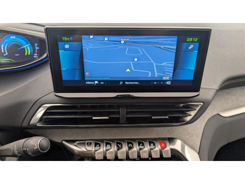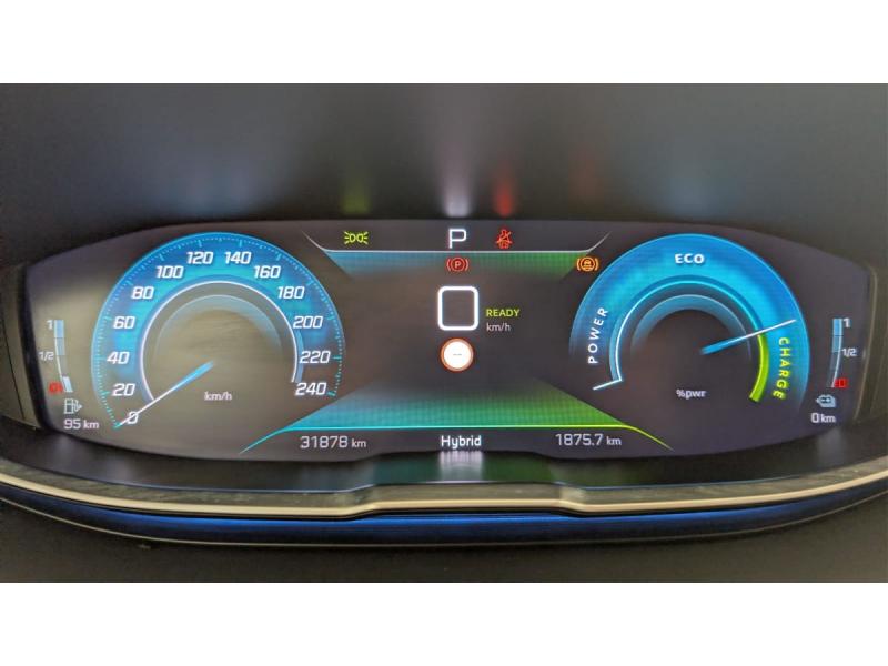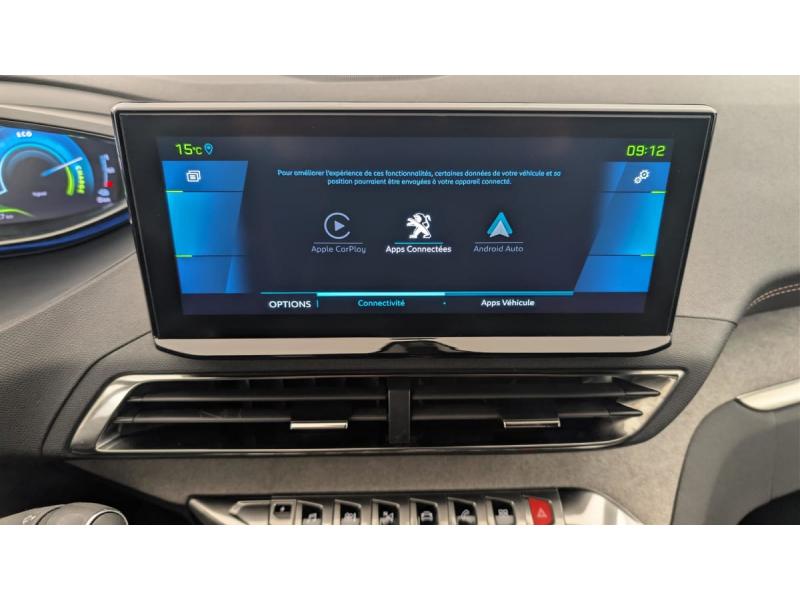 6 airbags (Frontaux adaptatifs, latéraux AV, rideaux AV/AR)Accès et démarrage mains libresAccoudoir central AV à ouverture papillon, avec compartiment de rangement éclairé et réfrigérableAir conditionné automatique bi-zone avec aérateurs aux places ARAppuis-tête à sécurité optimisée réglables en hauteur (conducteur, passager et AR x3)Avertisseur de temps de conduiteAvertisseur sonore audible depuis l'extérieur pour la sécurité piétonsBanquette AR rabattable 1/3 - 2/3 avec accoudoir central, trappe à skis et commandes de rabattement depuis le coffreBarres de toit longitudinales en aluminiumCâble de recharge T2 mode 2 (10 A / 2,3 kW)Calandre avec design évolutif chroméCanules d'echappement de style chroméesCommandes de lève-vitres avec inserts chromésCoques de rétroviseurs extérieurs Noir Perla NeraDécors de planche de bord et panneaux de portes Alcantara Gris GrevalDétection de sous-gonflage indirecteDirection assistée électrique, colonne de direction réglable en hauteur et profondeur (mécanique)Enjoliveur d'arc de pavillon en Inox BrillantEnjoliveurs d'ailes AV chromésEssuie-vitre AV avec système de lavage "Magic Wash"Fixations ISOFIX (passager AV et aux places latérales AR)Fonction "Mirror Screen" (Apple CarPlay / Android Auto )Frein de stationnement électrique avec aide au démarrage en pente et serrage automatiqueGarnissage Tissu BELOMKA / TEPIndicateur de rapport conseilléJantes alliage 18" diamantées DETROIT bi-ton Noir Onyx brillantKit de dépannage de pneumatiqueLécheurs de vitres, joncs de vitres latérales en Inox BrillantLève-vitres AV/AR électriques et séquentiels avec antipincementNavigation 3D connectée avec écran tactile capacitif 10" HD Avec reconnaissance vocale, cartographie EuropePédalier et repose-pied conducteur en aluminiumPack City 1 : Aide graphique et sonore au stationnement AV Pack CityPack Drive Assist Plus : Régulateur de vitesse adaptatif avec fonction Stop&Go Aide au maintien de la position dans la voie (Lane Positioning Assist)Pack Eclairage d'ambiance : Eclairage à LED des caves à pied, éclairage d'ambiance à LED sur panneaux de portes AVPack Safety Plus : Alerte attention conducteur Commutation automatique des feux de route / feux de croisement Alerte active de franchissement involontaire de ligne et bas côté Pack Safety avec Distance alert Système de surveillance d'angle mortPack Visibilité : Eclairage d'accompagnement automatique Allumage automatique des feux de croisement Essuie-vitre AV à déclenchement automatiquePares-soleil avec miroirs de courtoisie éclairésPassages de roues rapportés Noir MatPEUGEOT Connect SOSPeugeot i-Cockpit avec combiné tête haute numérique, volant compact multi-fonctionsPlafonniers AV/AR à LED avec 2 spots de lecturePlancher de coffre fixe avec articulation pour accès au coffre de rangement du câble de rechargePoches/filets aumonières au dos des sièges AVPrise 12 V (x3 : zone connectique, AR de console et coffre)Prises USB de charge (x2) au 2ème rangProjecteurs "Peugeot Full LED Technology" avec correction automatique de site, fonction Eclairage Virage Statique,"Foggy Mode" et feux diurnes à LED sous projecteursRétroviseur intérieur photosensible sans cadreRétroviseurs extérieurs dégivrants avec réglage et rabattement électriques, éclairage d'accueil à LED, témoin de surveillance d'angles mortsReconnaissance étendue des panneaux de signalisationSécurité enfants électrique des vitres ARSélecteur de modes de conduite (Electric, Hybrid, Sport)Sabot de pare-chocs AV peint MétallureSiège conducteur avec réglage lombaireSièges AV réglables en hauteurToggle Switches chromés (touches piano d'activation des fonctions de l'écran tactile)Toit "Black Diamond"Trappe de recharge électrique avec indicateur d'état de chargeVitres latérales AR et lunette AR chauffante surteintéesVitres latérales AV feuilletées acoustiquesVolant cuir fleur perforé Mistral avec bagues chromées et badge GT