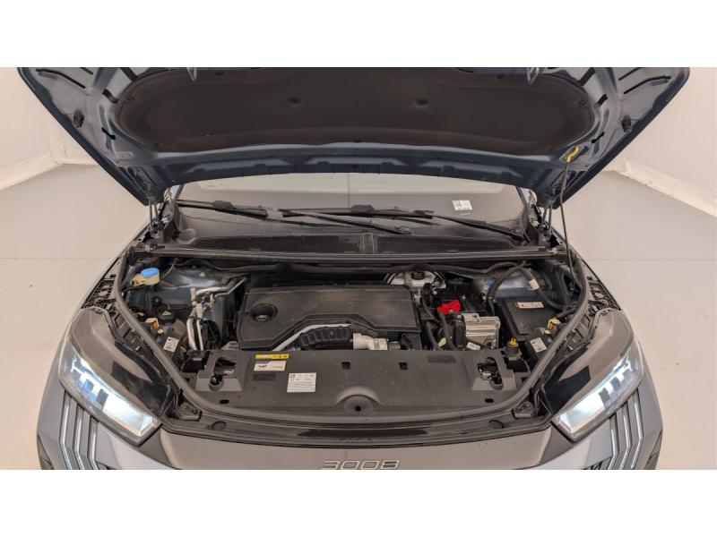 3 prises 12 V (Console centrale, rang 2, coffre)4 poignées de maintien rétractables (2 à l'AV et 2 à l'AR)6 airbags: frontaux conducteur et passager auto-adaptatifs (passager neutralisable par clé), latéraux conducteur et passager AV (thorax et bassin), rideaux aux places AV et AR (tête et thorax)6 HP (2 tweeters et 2 woofers à l'AV et 2 larges bandes à l'AR)Accès et démarrage mains libres ProximityAir conditionné automatique bi-zoneAllumage automatique des pharesBanquette AR avec dossier rabattable 40/20/40Détection de sous-gonflage indirecteEclairage intérieur Plafonnier AV et liseuses AR à LED, Boite à gants et rangement de console éclairés à LED, Eclairage des caves à pieds AV à LEDEléments de style éxterieur Bandeau entre les projecteurs Noir laqué avec logo 3008. Calandre couleur caisse, écopes latérales Noir laqué, décor inférieur Gris Meteor, jupe inférieure Noir grainé. Vitres AR, vitres de custode et lEléments de style intérieure Planche de bord moussée avec décor tissu RIMINI chiné et alcôve Graphène, façade et aérateurs Noir laqué avec décor Gris Stène, Panneaux de portes avec décor tissu RIMINI chin&eacESP avec aide au démarrage en penteEssuie-vitre AV à déclenchement automatiqueFeux AR 3 griffes à LEDFeux diurnes 3 griffes à LEDFixations ISOFIX et Top Tether aux places latérales ARFrein de stationnement électriqueHabitacle et ciel de pavillon NoirJantes alliage 19" diamantées Lulea Noir Orbital, vernis brillantLève-vitres AV/AR électriques et séquentiels avec antipincementMonogrammes AR 3008 et HybridMonogrammes AV: blason PEUGEOT et 3008Pack Safety Plus Régulateur / Limiteur de vitesse, Freinage d'urgence automatique avec alerte risque de collision pilotée par caméra et radar, Alerte active de franchissement involontaire de ligne et bas côté, Reconnaissance étendue des panneaux dePare-brise feuilleté acoustiquePEUGEOT i-Cockpit panoramique avec Double écran HD flottant (2 x 10'')PEUGEOT i-Connect - Connect One: Fonctionnalités principales à bord (Mises à jour Over The Air, Géolocalisation), Services de sécurité (Appel d’urgence, Peugeot Assistance), Services d’entretien (Télémaintenance, guide d’utiPEUGEOT i-Connect - Connect Plus: Services de sécurité: alarme connectée, Services à distance (E-Remote Control, Remote Control, Find My Car, My Trip Report, Peugeot Skill for Alexa), e-ROUTES par Free2move charge, (Abonnement 6 mois inclus, renouvellement 8 € / mPEUGEOT i-Connect Radio DAB, Bluetooth (connexion 2 téléphones), Mirror Screen sans fil (Apple CarPlay / Android Auto), Peugeot Connect SOS & Assistance, 1 prise USB C (Data & charge)Plancher de coffre modulable 2 positionsProjecteurs "Peugeot Led Technology"Rétroviseur intérieur électrochromeRétroviseurs extérieurs dégivrants avec réglage et rabattement électriques, éclairage de seuilSellerie tissu CRISPY embossé, accompagnement TEP Isabella, écharpe tissu RIMINI chiné, surpiqûres QuartzSièges AV à réglage en hauteur manuelVisiopark 1 Caméra de recul & aide au stationnement AR, graphique et sonoreVitres AR, custodes et lunette AR teintéesVolant compact croûte de cuir avec commandes intégrées Noir laqué, décors Gris Stène