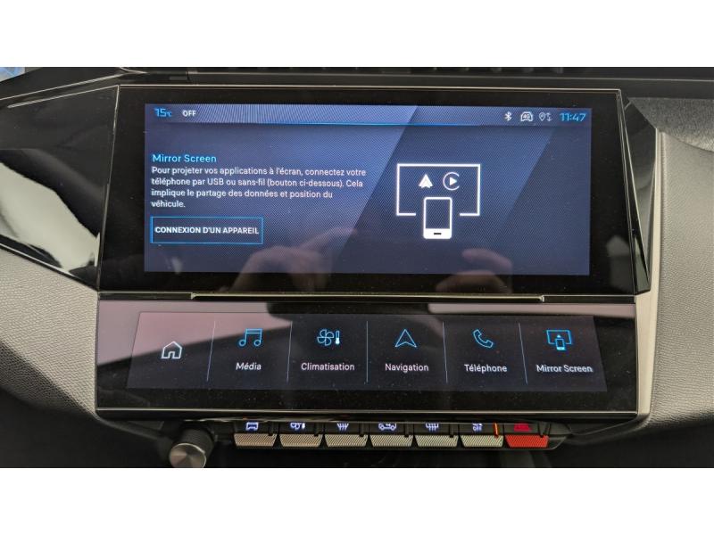 4 poignées de maintienABSAccoudoir central AV avec compartiment de rangementAir conditionné automatique bi-zoneAirbags frontaux conducteur et passager adaptatifs (passager neutralisable par clé), airbags latéraux conducteur et passager AV.airbags rideaux de tête aux places AV/ARAlerte attention conducteurAllumage automatique des feux de croisementBanquette AR rabattable 1/3-2/3Boîte de vitesse automatique, séquentielle (6 rapports)Commutation automatique des feux de routeContrôle de tractionDétection de sous gonflageDirection assistée électriqueEcran central tactile 10"ESP avec fonction Hill Assist (Aide au démarrage en pente)Essuie-vitre AV à déclenchement automatiqueFeux diurnes à LED sous projecteurs nouvelle signature PeugeotFixations ISOFIX aux 2 places latérales AR (Top Tether)Fonction Mirror Screen (Apple CarPlay/Android Auto) sans filFrein de stationnement électriqueGarnissage tri-matières TEP/Tissu Falgo, surpiqûres BleuJantes alliage 17" Halong diamantéesLève-vitres électriques AV/ AR et séquentiels avec anti-pincementPack Drive Assist : Régulateur de vitesse adaptatif avec fonction Stop&GoPack Safety Plus : Active Safety Brake piloté par caméra et radarPare-brise teinté feuilleté acoustiquePeugeot i-Cockpit avec combiné d'instrumentation numérique 10'' personnalisableProjecteurs Peugeot LEDRéglage lombaire du siège conducteurRétroviseur intérieur photosensibleRétroviseurs extérieurs électriques, dégivrants et rabattables électriquement, avec répétiteurs de feux clignotants à LEDReconnaissance étendue des panneaux de signalisationSélecteur mode de conduite Eco et SportSiège conducteur réglable en hauteurSiège passager réglable en hauteurVitres AV électriquesVitres latérales AR et lunette AR surteintéesVolant avec réglage manuel en hauteur et en profondeurVolant croûte de cuir