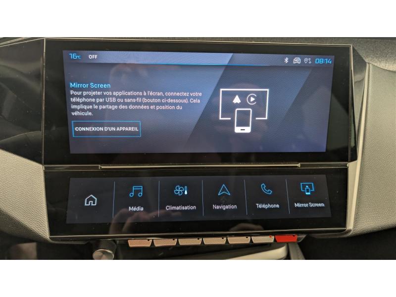 Accoudoir central AV avec compartiment de rangementActive Safety Brake (freinage automatique d'urgence)Aide au stationnement ARAir conditionné automatique bi-zoneAirbags frontaux conducteur et passager adaptatifs (passager neutralisable par clé), airbags latéraux conducteur et passager AV.airbags rideaux de tête aux places AV/ARAlerte active de franchissement involontaire de ligne et bas côtéAlerte attention conducteurAllumage automatique des feux de croisementBanquette AR rabattable 1/3-2/3Ceintures de sécurité AR 3 points à enrouleur (x3) avec prétensionneurs et limiteurs d'effort aux places latéralesCeintures de sécurité AV 3 points à enrouleur, avec prétensionneurs et limiteurs d'effortCommutation automatique des feux de routeDétection de sous gonflageDirection assistée électriqueEcran central tactile 10"ESP avec fonction Hill Assist (Aide au démarrage en pente)Essuie-vitre AV à déclenchement automatiqueFeux diurnes à LED sous projecteurs nouvelle signature PeugeotFixations ISOFIX aux 2 places latérales AR (Top Tether)Fonction Mirror Screen (Apple CarPlay/Android Auto) sans filFrein de stationnement électriqueGarnissage tri-matières TEP/Tissu Falgo, surpiqûres BleuJantes alliage 16"Kit de dépannage de pneumatiqueLève-vitres électriques AV/ AR et séquentiels avec anti-pincementNavigation connectée avec écran central tactile 10'' et écran avec iToggles virtuels personnalisables. Reconnaissance vocale en langage naturel.Pack Drive Assist : Régulateur de vitesse adaptatif avec fonction 30 km/hPack Safety Plus : Active Safety Brake piloté par caméra et radarPare-brise teinté feuilleté acoustiquePeugeot i-Cockpit avec combiné d'instrumentation numérique 10'' personnalisableProjecteurs Peugeot LEDRétroviseur intérieur photosensibleRétroviseurs extérieurs électriques, dégivrants et rabattables électriquement, avec répétiteurs de feux clignotants à LEDReconnaissance étendue des panneaux de signalisationSélecteur mode de conduite EcoVitres latérales AR et lunette AR surteintéesVolant avec réglage manuel en hauteur et en profondeurVolant croûte de cuir