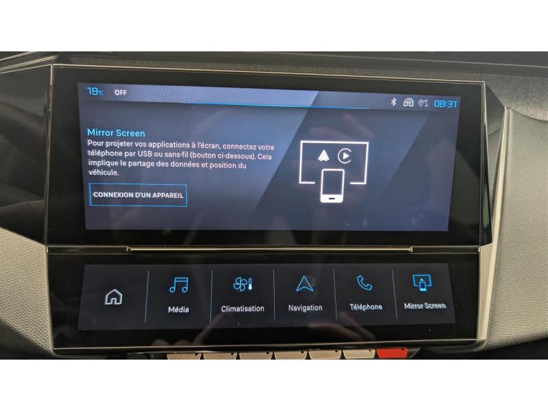 Accoudoir central AV avec compartiment de rangementActive Safety Brake (freinage automatique d'urgence)Aide au stationnement ARAir conditionné automatique bi-zoneAirbags frontaux conducteur et passager adaptatifs (passager neutralisable par clé), airbags latéraux conducteur et passager AV.airbags rideaux de tête aux places AV/ARAlerte active de franchissement involontaire de ligne et bas côtéAlerte attention conducteurAllumage automatique des feux de croisementBanquette AR rabattable 1/3-2/3Ceintures de sécurité AR 3 points à enrouleur (x3) avec prétensionneurs et limiteurs d'effort aux places latéralesCeintures de sécurité AV 3 points à enrouleur, avec prétensionneurs et limiteurs d'effortCommutation automatique des feux de routeDétection de sous gonflageDirection assistée électriqueEcran central tactile 10"ESP avec fonction Hill Assist (Aide au démarrage en pente)Essuie-vitre AV à déclenchement automatiqueFeux diurnes à LED sous projecteurs nouvelle signature PeugeotFixations ISOFIX aux 2 places latérales AR (Top Tether)Fonction Mirror Screen (Apple CarPlay/Android Auto) sans filFrein de stationnement électriqueGarnissage tri-matières TEP/Tissu Falgo, surpiqûres BleuJantes alliage 16"Kit de dépannage de pneumatiqueLève-vitres électriques AV/ AR et séquentiels avec anti-pincementNavigation connectée avec écran central tactile 10'' et écran avec iToggles virtuels personnalisables. Reconnaissance vocale en langage naturel.Pack Drive Assist : Régulateur de vitesse adaptatif avec fonction 30 km/hPack Safety Plus : Active Safety Brake piloté par caméra et radarPare-brise teinté feuilleté acoustiquePeugeot i-Cockpit avec combiné d'instrumentation numérique 10'' personnalisableProjecteurs Peugeot LEDRétroviseur intérieur photosensibleRétroviseurs extérieurs électriques, dégivrants et rabattables électriquement, avec répétiteurs de feux clignotants à LEDReconnaissance étendue des panneaux de signalisationSélecteur mode de conduite EcoVitres latérales AR et lunette AR surteintéesVolant avec réglage manuel en hauteur et en profondeurVolant croûte de cuir