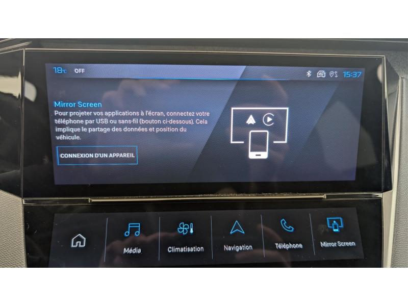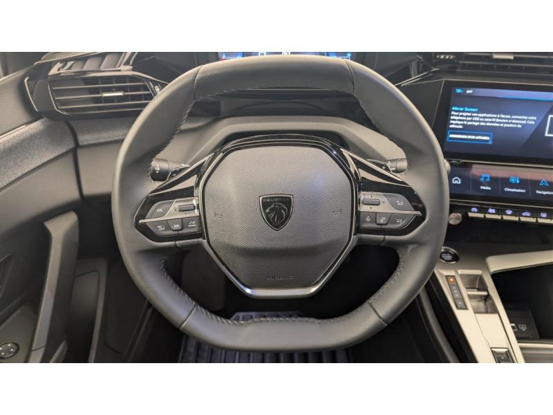 ABSAccoudoir central AV avec compartiment de rangementActive Safety Brake (freinage automatique d'urgence)Aide au stationnement ARAir conditionné automatique bi-zoneAirbags frontaux conducteur et passager adaptatifs (passager neutralisable par clé), airbags latéraux conducteur et passager AV.airbags rideaux de tête aux places AV/ARAlerte active de franchissement involontaire de ligne et bas côtéAlerte attention conducteurAllumage automatique des feux de croisementBanquette AR rabattable 40 - 20 - 40 déverrouillable depuis le coffreBoîte de vitesse automatique, séquentielle (6 rapports)Ceintures de sécurité AR 3 points à enrouleur (x3) avec prétensionneurs et limiteurs d'effort aux places latéralesCeintures de sécurité AV 3 points à enrouleur, avec prétensionneurs et limiteurs d'effortCommutation automatique des feux de routeContrôle de tractionDétection de sous gonflageDirection assistée électriqueEcran central tactile 10"ESP avec fonction Hill Assist (Aide au démarrage en pente)Essuie-vitre AV à déclenchement automatiqueFeux diurnes à LED sous projecteurs nouvelle signature PeugeotFixations pour 2 sièges enfants ISOFIX, aux places AR, inclus Top TetherFonction Mirror Screen (Apple CarPlay/Android Auto) sans filFrein de stationnement électriqueGarnissage tri-matières TEP/Tissu Falgo, surpiqûres BleuJantes alliage 17" Halong diamantéesLève-vitres électriques AV/ AR et séquentiels avec anti-pincementPack Drive Assist : Régulateur de vitesse adaptatif avec fonction Stop&GoPack Safety Plus : Active Safety Brake piloté par caméra et radarPare-brise teinté feuilleté acoustiquePeugeot i-Cockpit avec instrumentation numérique 10" personnalisableProjecteurs Peugeot LEDRéglage lombaire du siège conducteurRétroviseur intérieur photosensibleRétroviseurs extérieurs électriques, dégivrants et rabattables électriquement, avec répétiteurs de feux clignotants à LEDRétroviseurs extérieurs réglables électriquementReconnaissance étendue des panneaux de signalisationSélecteur mode de conduite Eco et SportSièges AV réglables en hauteurVitres AV électriquesVitres de custode AR et lunette AR chauffante temporisée surteintéesVitres latérales AR surteintéesVolant avec réglage manuel en hauteur et en profondeurVolant croûte de cuir