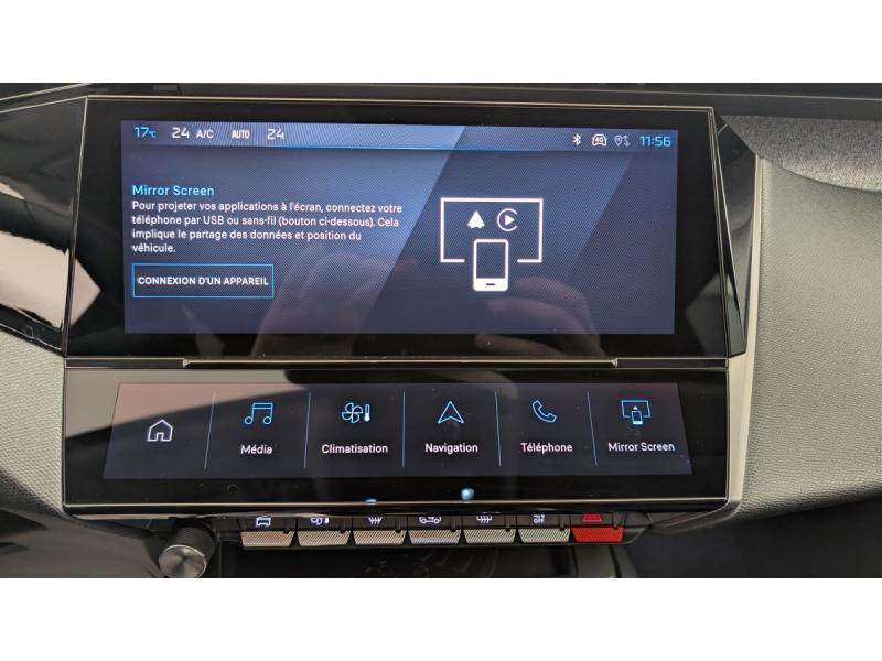 Accoudoir central AV avec rangementActive Safety Brake (freinage automatique d'urgence)Aide au stationnement ARAir conditionné automatique bi-zoneAirbags frontaux conducteur et passager adaptatifs (passager neutralisable par clé), airbags latéraux conducteur et passager AV.airbags rideaux de tête aux places AV/ARAlerte active de franchissement involontaire de ligne et bas côtéAlerte attention conducteurAllumage automatique des feux de croisementBanquette AR rabattable 40 - 20 - 40 déverrouillable depuis le coffreCeintures de sécurité AR 3 points à enrouleur (x3) avec prétensionneurs et limiteurs d'effort aux places latéralesCeintures de sécurité AV 3 points à enrouleur, avec prétensionneurs et limiteurs d'effortCommutation automatique des feux de routeDétection de sous gonflageDirection assistée électriqueEcran central tactile 10"ESP avec fonction Hill Assist (Aide au démarrage en pente)Essuie-vitre AV à déclenchement automatiqueFeux diurnes à LED sous projecteurs nouvelle signature PeugeotFixations pour 2 sièges enfants ISOFIX, aux places AR, inclus Top TetherFonction Mirror Screen (Apple CarPlay/Android Auto) sans filFrein de stationnement électriqueGarnissage tri-matières TEP/Tissu Falgo, surpiqûres BleuJantes alliage 16"Kit de dépannage de pneumatiqueLève-vitres électriques AV/ AR et séquentiels avec anti-pincementNavigation connectée avec écran central tactile 10'' et écran avec iToggles virtuels personnalisables. Reconnaissance vocale en langage naturel.Pack Drive Assist : Régulateur de vitesse adaptatif avec fonction 30 km/hPack Safety Plus : Active Safety Brake piloté par caméra et radarPare-brise teinté feuilleté acoustiquePeugeot i-Cockpit avec combiné d'instrumentation numérique 10'' personnalisablePlancher de coffre modulable 2 positionsProjecteurs Peugeot LEDRétroviseur intérieur photosensibleRétroviseurs extérieurs électriques, dégivrants et rabattables électriquement, avec répétiteurs de feux clignotants à LEDReconnaissance étendue des panneaux de signalisationSélecteur mode de conduite EcoVitres de custode AR et lunette AR chauffante temporisée surteintéesVitres latérales AR surteintéesVolant avec réglage manuel en hauteur et en profondeurVolant croûte de cuir