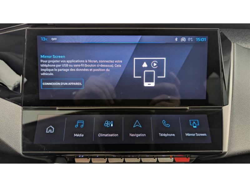 2 prises USB-C à l'AR2 prises USB-C à l'AV2 télécommandes 3 boutons4 poignées de maintienAccès et démarrage mains libresAccoudoir central avec rangement et porte gobeletActive Safety Brake piloté par caméra et radarAide au stationnement ARAir conditionné automatique bi-zoneAirbags frontaux conducteur et passager adaptatifs (passager neutralisable par clé), airbags latéraux conducteur et passager AV.airbags rideaux de tête aux places AV/ARBanquette AR rabattable 2/3-1/3Calandre avec grille chroméeCommutation automatique des feux de routeCoques de rétroviseurs extérieurs Noir BrillantDécors intérieurs textiles (planche de bord, panneaux de porte)Détection de sous gonflageDirection assistée électriqueESP avec fonction Hill Assist (Aide au démarrage en pente)Essuie-vitre AV à déclenchement automatiqueFeux diurnes à LED sous projecteursFixations ISOFIX aux 2 places latérales AR (Top Tether)Fonction BluetoothFonction DAB (Radio Numérique Terrestre)Fonction Mirror Screen (Apple CarPlay / Android Auto ) sans filFrein de stationnement électriqueJantes alliage 17" SilexLécheurs de vitres Noir BrillantLève-vitres AV/AR électriques et séquentiels avec antipincementNavigation connectée avec écran central tactile 10'' et i-Toggles virtuels personnalisablesPack Drive Assist - Régulateur de vitesse adaptatif avec fonction Stop&Go : Régulateur de vitesse adaptatif avec fonction Stop&GoPack Safety Plus - Freinage d'urgence automatique (Active Safety Brake ) avec alerte risque de collision - Freinage d'urgence automatique de jour et de nuit (caméra & radar) - Alerte active de franchissement involontaire de ligne et bas côté - Reconnaissance &Pare-brise teinté feuilleté acoustiquePeugeot i-Cockpit avec instrumentation numérique 10" personnalisablePrise 12 V à l'AVProjecteurs Peugeot LED TechnologyRéglage lombaire du siège conducteurRétroviseurs extérieurs électriques, dégivrants et rabattables électriquement, avec répétiteurs de feux clignotants à LEDReconnaissance vocale en langage naturelSélecteur mode de conduite Eco et SportSièges AV réglables en hauteurSièges dynamiques avec appuis tête AV deux voiesSystème audio 6 HPSystème stop & go couplé avec l'assistance au positionnement sur la voieVisioPark 1 (caméra de recul)Vitres latérales AR et lunette AR chauffante temporisée surteintéesVolant avec réglage manuel en hauteur et en profondeurVolant croûte de cuir
