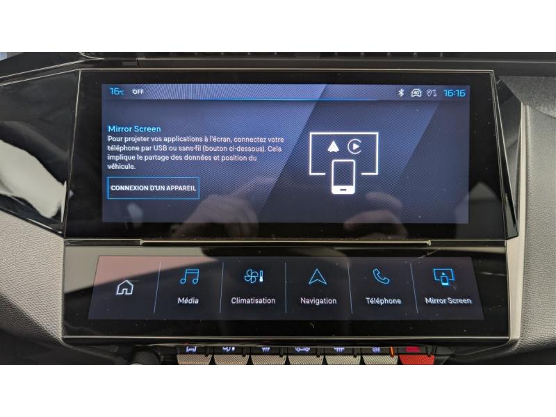 2 prises USB-C à l'AR2 prises USB-C à l'AV2 télécommandes 3 boutons4 poignées de maintienAccès et démarrage mains libresAccoudoir central avec rangement et porte gobeletActive Safety Brake piloté par caméra et radarAide au stationnement ARAir conditionné automatique bi-zoneAirbags frontaux conducteur et passager adaptatifs (passager neutralisable par clé), airbags latéraux conducteur et passager AV.airbags rideaux de tête aux places AV/ARBanquette AR rabattable 2/3-1/3Calandre avec grille chroméeCommutation automatique des feux de routeCoques de rétroviseurs extérieurs Noir BrillantDécors intérieurs textiles (planche de bord, panneaux de porte)Détection de sous gonflageDirection assistée électriqueESP avec fonction Hill Assist (Aide au démarrage en pente)Essuie-vitre AV à déclenchement automatiqueFeux diurnes à LED sous projecteursFixations ISOFIX aux 2 places latérales AR (Top Tether)Fonction BluetoothFonction DAB (Radio Numérique Terrestre)Fonction Mirror Screen (Apple CarPlay / Android Auto ) sans filFrein de stationnement électriqueJantes alliage 17" SilexLécheurs de vitres Noir BrillantLève-vitres AV/AR électriques et séquentiels avec antipincementNavigation connectée avec écran central tactile 10'' et i-Toggles virtuels personnalisablesPack Drive Assist - Régulateur de vitesse adaptatif avec fonction Stop&Go : Régulateur de vitesse adaptatif avec fonction Stop&GoPack Safety Plus - Freinage d'urgence automatique (Active Safety Brake ) avec alerte risque de collision - Freinage d'urgence automatique de jour et de nuit (caméra & radar) - Alerte active de franchissement involontaire de ligne et bas côté - Reconnaissance &Pare-brise teinté feuilleté acoustiquePeugeot i-Cockpit avec instrumentation numérique 10" personnalisablePrise 12 V à l'AVProjecteurs Peugeot LED TechnologyRéglage lombaire du siège conducteurRétroviseurs extérieurs électriques, dégivrants et rabattables électriquement, avec répétiteurs de feux clignotants à LEDReconnaissance vocale en langage naturelSélecteur mode de conduite Eco et SportSièges AV réglables en hauteurSièges dynamiques avec appuis tête AV deux voiesSystème audio 6 HPSystème stop & go couplé avec l'assistance au positionnement sur la voieVisioPark 1 (caméra de recul)Vitres latérales AR et lunette AR chauffante temporisée surteintéesVolant avec réglage manuel en hauteur et en profondeurVolant croûte de cuir