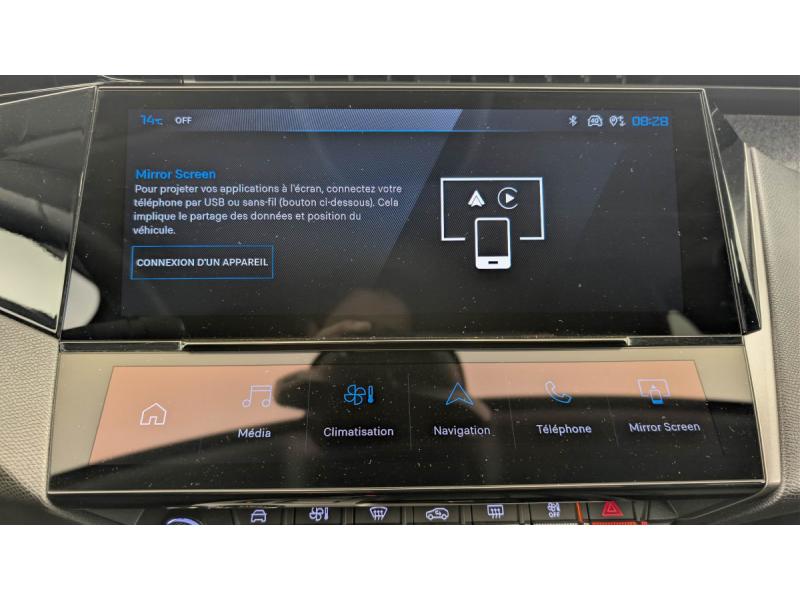 2 prises USB-C à l'AVAccès et démarrage mains libresAccoudoir central avec rangement et porte gobeletActive Safety Brake piloté par caméra et radarAide au stationnement ARAir conditionné automatique bi-zoneAir Quality System (filtre à charbon HEPA)Airbags frontaux conducteur et passager adaptatifs (passager neutralisable par clé), airbags latéraux conducteur et passager AV.airbags rideaux de tête aux places AV/ARBanquette AR rabattable 2/3-1/3Calandre avec grille chroméeCommutation automatique des feux de routeCoques de rétroviseurs extérieurs Noir BrillantDécors intérieurs textiles (planche de bord, panneaux de porte)Détection de sous gonflageDirection assistée électriqueESP avec fonction Hill Assist (Aide au démarrage en pente)Feux diurnes à LED sous projecteursFixations ISOFIX aux 2 places latérales AR (Top Tether)Fonction BluetoothFonction DAB (Radio Numérique Terrestre)Fonction Mirror Screen (Apple CarPlay / Android Auto ) sans filFrein de stationnement électriqueJantes alliage 17" SilexLécheurs de vitres Noir BrillantLève-vitres AV/AR électriques et séquentiels avec antipincementPack Drive Assist : Régulateur de vitesse adaptatif avec fonction Stop&GoPack Safety Plus : Alerte attention conducteur Reconnaissance étendue des panneaux de signalisation et préconisation de vitesse Alerte active de franchissement involontaire de ligne et bas côté Freinage d'urgence automatique de jour et de nuit (caméra & raPeugeot i-Cockpit avec instrumentation numérique 10" personnalisablePrise 12 V à l'AVProjecteurs Peugeot LED TechnologyRéglage lombaire du siège conducteurRétroviseurs extérieurs électriques, dégivrants et rabattables électriquement, avec répétiteurs de feux clignotants à LEDReconnaissance vocale en langage naturelSélecteur mode de conduite Eco et SportSièges AV réglables en hauteurSystème audio 6 HPVisioPark 1 (caméra de recul)Vitres latérales AR et lunette AR chauffante temporisée surteintéesVolant avec réglage manuel en hauteur et en profondeurVolant croûte de cuir