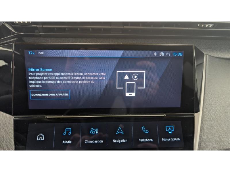 Accès et démarrage mains libresAccoudoir central avec rangement et porte gobeletAide au stationnement ARAir conditionné automatique bi-zoneAirbags frontaux conducteur et passager adaptatifs (passager neutralisable par clé), airbags latéraux conducteur et passager AV.airbags rideaux de tête aux places AV/ARBanquette AR rabattable 2/3-1/3Commutation automatique des feux de routeDécors intérieurs textiles (planche de bord, panneaux de porte)Détection de sous gonflageDirection assistée électriqueEcran central tactile 10"ESP avec fonction Hill Assist (Aide au démarrage en pente)Essuie-vitre AV à déclenchement automatiqueFeux diurnes à LED sous projecteursFixations ISOFIX aux 2 places latérales AR (Top Tether)Fonction BluetoothFonction DAB (Radio Numérique Terrestre)Fonction Mirror Screen (Apple CarPlay / Android Auto ) sans filFrein de stationnement électriqueJantes alliage 17" SilexLève-vitres AV/AR électriques et séquentiels avec antipincementPack Drive Assist : Régulateur de vitesse adaptatif avec fonction Stop&GoPack Safety Plus : Alerte attention conducteur Reconnaissance étendue des panneaux de signalisation et préconisation de vitesse Alerte active de franchissement involontaire de ligne et bas côté Freinage d'urgence automatique de jour et de nuit (caméra & raPare-brise teinté feuilleté acoustiquePeugeot i-Cockpit avec instrumentation numérique 10" personnalisableProjecteurs Peugeot LED TechnologyRéglage lombaire du siège conducteurRétroviseur intérieur photosensibleRétroviseurs extérieurs électriques, dégivrants et rabattables électriquement, avec répétiteurs de feux clignotants à LEDSélecteur mode de conduite Eco et SportSellerie tri-matières TEP / Tissu Falgo, surpiqûres BleuSièges AV réglables en hauteurSystème audio 6 HPVitres latérales AR et lunette AR chauffante temporisée surteintéesVolant croûte de cuir