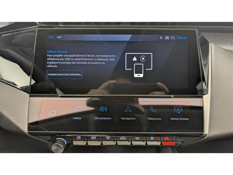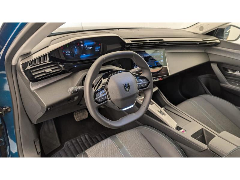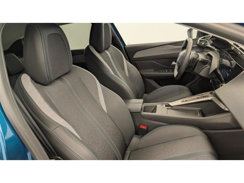 Accès et démarrage mains libresAccoudoir central avec rangement et porte gobeletAide au stationnement ARAir conditionné automatique bi-zoneAirbags frontaux conducteur et passager adaptatifs (passager neutralisable par clé), airbags latéraux conducteur et passager AV.airbags rideaux de tête aux places AV/ARBanquette AR rabattable 2/3-1/3Commutation automatique des feux de routeDécors intérieurs textiles (planche de bord, panneaux de porte)Détection de sous gonflageDirection assistée électriqueEcran central tactile 10"ESP avec fonction Hill Assist (Aide au démarrage en pente)Essuie-vitre AV à déclenchement automatiqueFeux diurnes à LED sous projecteursFixations ISOFIX aux 2 places latérales AR (Top Tether)Fonction BluetoothFonction DAB (Radio Numérique Terrestre)Fonction Mirror Screen (Apple CarPlay / Android Auto ) sans filFrein de stationnement électriqueJantes alliage 17" SilexLève-vitres AV/AR électriques et séquentiels avec antipincementPack Drive Assist : Régulateur de vitesse adaptatif avec fonction Stop&GoPack Safety Plus : Alerte attention conducteur Reconnaissance étendue des panneaux de signalisation et préconisation de vitesse Alerte active de franchissement involontaire de ligne et bas côté Freinage d'urgence automatique de jour et de nuit (caméra & raPare-brise teinté feuilleté acoustiquePeugeot i-Cockpit avec instrumentation numérique 10" personnalisableProjecteurs Peugeot LED TechnologyRéglage lombaire du siège conducteurRétroviseur intérieur photosensibleRétroviseurs extérieurs électriques, dégivrants et rabattables électriquement, avec répétiteurs de feux clignotants à LEDSélecteur mode de conduite Eco et SportSellerie tri-matières TEP / Tissu Falgo, surpiqûres BleuSièges AV réglables en hauteurSystème audio 6 HPVitres latérales AR et lunette AR chauffante temporisée surteintéesVolant croûte de cuir