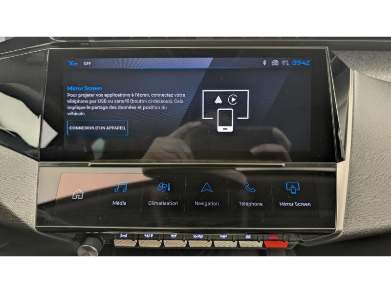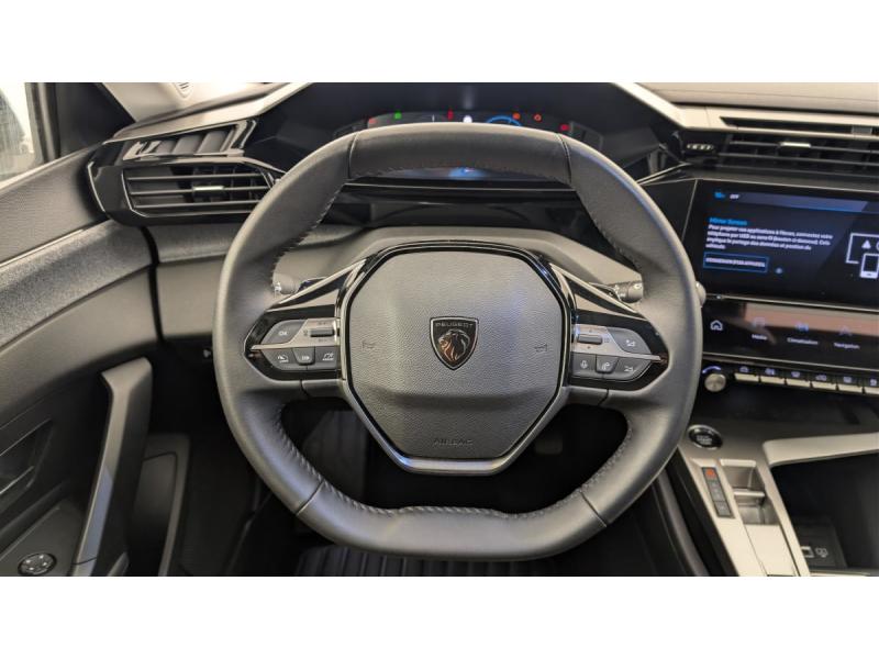 Accès et démarrage mains libresAccoudoir central avec rangement et porte gobeletAide au stationnement ARAir conditionné automatique bi-zoneAirbags frontaux conducteur et passager adaptatifs (passager neutralisable par clé), airbags latéraux conducteur et passager AV.airbags rideaux de tête aux places AV/ARBanquette AR rabattable 2/3-1/3Commutation automatique des feux de routeDécors intérieurs textiles (planche de bord, panneaux de porte)Détection de sous gonflageDirection assistée électriqueEcran central tactile 10"ESP avec fonction Hill Assist (Aide au démarrage en pente)Essuie-vitre AV à déclenchement automatiqueFeux diurnes à LED sous projecteursFixations ISOFIX aux 2 places latérales AR (Top Tether)Fonction BluetoothFonction DAB (Radio Numérique Terrestre)Fonction Mirror Screen (Apple CarPlay / Android Auto ) sans filFrein de stationnement électriqueJantes alliage 17" SilexLève-vitres AV/AR électriques et séquentiels avec antipincementPack Drive Assist : Régulateur de vitesse adaptatif avec fonction Stop&GoPack Safety Plus : Alerte attention conducteur Reconnaissance étendue des panneaux de signalisation et préconisation de vitesse Alerte active de franchissement involontaire de ligne et bas côté Freinage d'urgence automatique de jour et de nuit (caméra & raPare-brise teinté feuilleté acoustiquePeugeot i-Cockpit avec instrumentation numérique 10" personnalisableProjecteurs Peugeot LED TechnologyRéglage lombaire du siège conducteurRétroviseur intérieur photosensibleRétroviseurs extérieurs électriques, dégivrants et rabattables électriquement, avec répétiteurs de feux clignotants à LEDSélecteur mode de conduite Eco et SportSellerie tri-matières TEP / Tissu Falgo, surpiqûres BleuSièges AV réglables en hauteurSystème audio 6 HPVitres latérales AR et lunette AR chauffante temporisée surteintéesVolant croûte de cuir