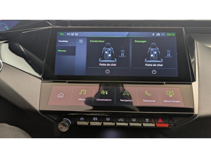4 poignées de maintienAccès et démarrage mains libresAccoudoir central avec rangement et porte gobeletAide au stationnement ARAide au stationnement AVAir conditionné automatique bi-zoneAirbags frontaux conducteur et passager adaptatifs (passager neutralisable par clé), airbags latéraux conducteur et passager AV.airbags rideaux de tête aux places AV/ARBanquette AR rabattable 2/3-1/3Commutation automatique des feux de routeDétection de sous gonflageDirection assistée électriqueESP avec fonction Hill Assist (Aide au démarrage en pente)Essuie-vitre AV à déclenchement automatiqueFeux AR spécifiques avec allumage dynamique griffe à griffeFeux diurnes à LED sous projecteursFixations ISOFIX aux 2 places latérales AR (Top Tether)Fonction BluetoothFonction DAB (Radio Numérique Terrestre)Fonction Mirror Screen (Apple CarPlay / Android Auto ) sans filFrein de stationnement électriqueJantes alliage 19" diamantées GRAPHITELève-vitres AV/AR électriques et séquentiels avec antipincementNavigation connectée avec écran central tactile 10'' et i-Toggles virtuels personnalisablesPédalier Sport et repose pied en aluminiumPack Drive Assist Plus : Régulateur de vitesse adaptatif avec fonction Stop&Go Conduite semi-autonome (niveau 2) Aide au maintien de la position dans la voiePack Safety Plus : Alerte attention conducteur Reconnaissance étendue des panneaux de signalisation et préconisation de vitesse Alerte active de franchissement involontaire de ligne et bas côté Freinage d'urgence automatique de jour et de nuit (caméra & raPare-brise teinté feuilleté acoustiquePeugeot Connect SOSPeugeot i-Cockpit avec instrumentation numérique 10" personnalisableProjecteurs Peugeot Matrix LED TechnologyRéglage lombaire du siège conducteurRétroviseur intérieur photosensibleRétroviseurs extérieurs électriques, dégivrants et rabattables électriquement, avec répétiteurs de feux clignotants à LEDSélecteur mode de conduite Eco et SportSystème audio 6 HPVitres latérales AR et lunette AR chauffante temporisée surteintéesVolant chauffantVolant cuir perforé