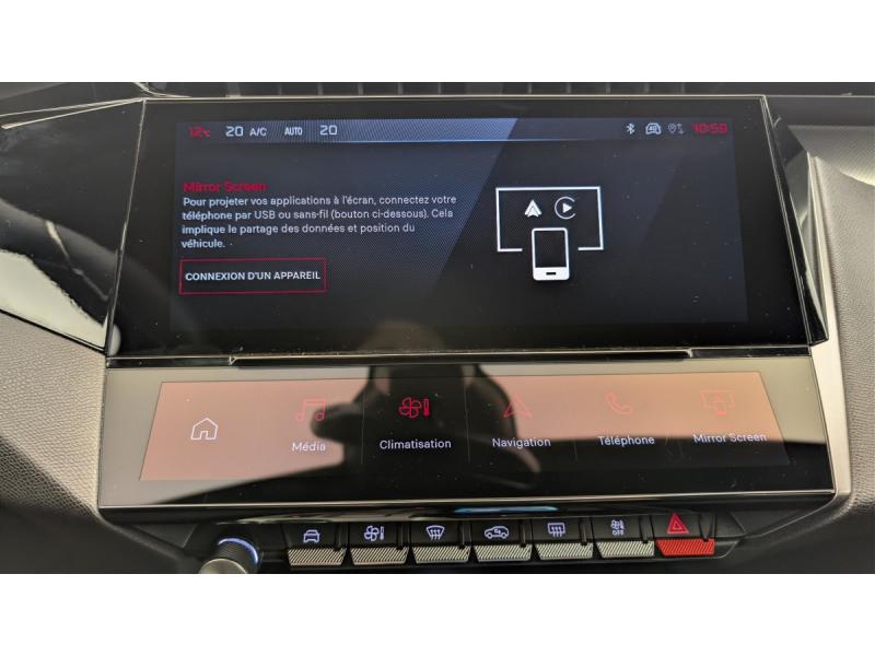 Accès et démarrage mains libresAccoudoir central avec rangement et porte gobeletAide au stationnement ARAide au stationnement AVAir conditionné automatique bi-zoneAirbags frontaux conducteur et passager adaptatifs (passager neutralisable par clé), airbags latéraux conducteur et passager AV.airbags rideaux de tête aux places AV/ARBanquette AR rabattable 2/3-1/3Commutation automatique des feux de routeDétection de sous gonflageDirection assistée électriqueESP avec fonction Hill Assist (Aide au démarrage en pente)Essuie-vitre AV à déclenchement automatiqueFeux AR spécifiques avec allumage dynamique griffe à griffeFeux diurnes à LED sous projecteursFixations ISOFIX aux 2 places latérales AR (Top Tether)Fonction BluetoothFonction DAB (Radio Numérique Terrestre)Fonction Mirror Screen (Apple CarPlay / Android Auto ) sans filFrein de stationnement électriqueJantes alliage 19" diamantées GRAPHITELève-vitres AV/AR électriques et séquentiels avec antipincementNavigation connectée avec écran central tactile 10'' et i-Toggles virtuels personnalisablesPédalier Sport et repose pied en aluminiumPack Drive Assist Plus : Régulateur de vitesse adaptatif avec fonction Stop&Go Conduite semi-autonome (niveau 2) Aide au maintien de la position dans la voiePack Safety Plus : Alerte attention conducteur Reconnaissance étendue des panneaux de signalisation et préconisation de vitesse Alerte active de franchissement involontaire de ligne et bas côté Freinage d'urgence automatique de jour et de nuit (caméra & raPare-brise teinté feuilleté acoustiquePeugeot Connect SOSPeugeot i-Cockpit avec instrumentation numérique 10" personnalisableProjecteurs Peugeot Matrix LED Technology Éclairage adaptatif en fonction des conditions extérieures et de la circulationRéglage lombaire du siège conducteurRétroviseur intérieur photosensibleRétroviseurs extérieurs électriques, dégivrants et rabattables électriquement, avec répétiteurs de feux clignotants à LEDSélecteur mode de conduite Eco et SportSellerie tri-matière tissu TEP / Tissu New BelomkaSièges AV réglables en hauteurSystème audio 6 HPVitres AV feuilletées acoustiquesVitres latérales AR et lunette AR chauffante temporisée surteintéesVolant chauffantVolant cuir perforé