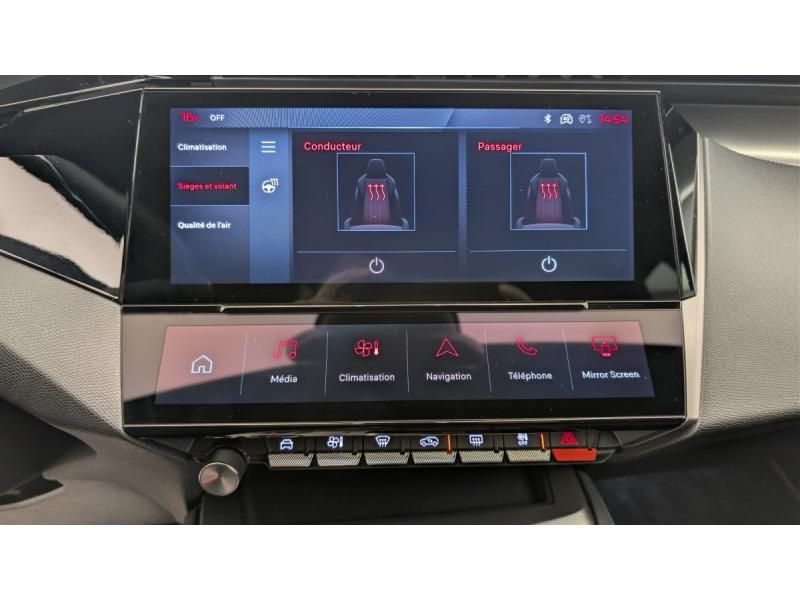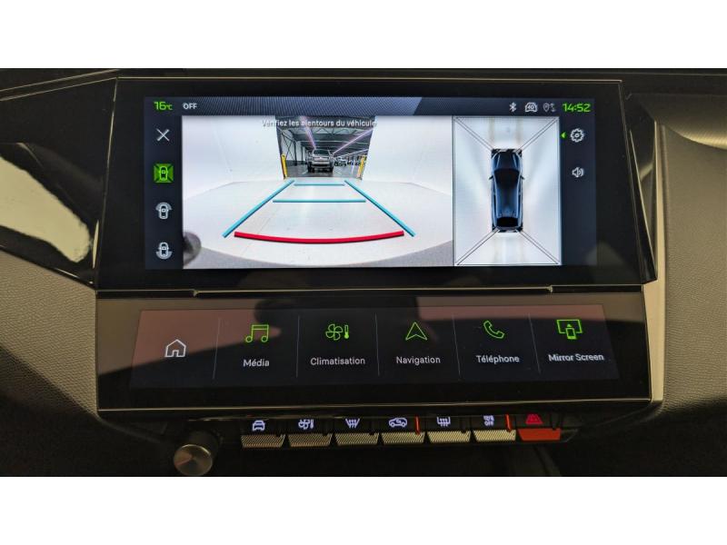 Accès et démarrage mains libresAccoudoir central avec rangement et porte gobeletAide au stationnement ARAide au stationnement AVAir conditionné automatique bi-zoneAirbags frontaux conducteur et passager adaptatifs (passager neutralisable par clé), airbags latéraux conducteur et passager AV.airbags rideaux de tête aux places AV/ARBanquette AR rabattable 2/3-1/3Commutation automatique des feux de routeDétection de sous gonflageDirection assistée électriqueESP avec fonction Hill Assist (Aide au démarrage en pente)Essuie-vitre AV à déclenchement automatiqueFeux AR spécifiques avec allumage dynamique griffe à griffeFeux diurnes à LED sous projecteursFixations ISOFIX aux 2 places latérales AR (Top Tether)Fonction BluetoothFonction DAB (Radio Numérique Terrestre)Fonction Mirror Screen (Apple CarPlay / Android Auto ) sans filFrein de stationnement électriqueJantes alliage 19" diamantées GRAPHITELève-vitres AV/AR électriques et séquentiels avec antipincementNavigation connectée avec écran central tactile 10'' et i-Toggles virtuels personnalisablesPédalier Sport et repose pied en aluminiumPack Drive Assist Plus : Régulateur de vitesse adaptatif avec fonction Stop&Go Conduite semi-autonome (niveau 2) Aide au maintien de la position dans la voiePack Safety Plus : Alerte attention conducteur Reconnaissance étendue des panneaux de signalisation et préconisation de vitesse Alerte active de franchissement involontaire de ligne et bas côté Freinage d'urgence automatique de jour et de nuit (caméra & raPare-brise teinté feuilleté acoustiquePeugeot Connect SOSPeugeot i-Cockpit avec instrumentation numérique 10" personnalisableProjecteurs Peugeot Matrix LED Technology Éclairage adaptatif en fonction des conditions extérieures et de la circulationRéglage lombaire du siège conducteurRétroviseur intérieur photosensibleRétroviseurs extérieurs électriques, dégivrants et rabattables électriquement, avec répétiteurs de feux clignotants à LEDSélecteur mode de conduite Eco et SportSeuils de portes AV aluminiumSièges AV réglables en hauteurSystème audio 6 HPVitres AV feuilletées acoustiquesVitres latérales AR et lunette AR chauffante temporisée surteintéesVolant chauffantVolant cuir perforéVolet motorisé avec accès bras chargés