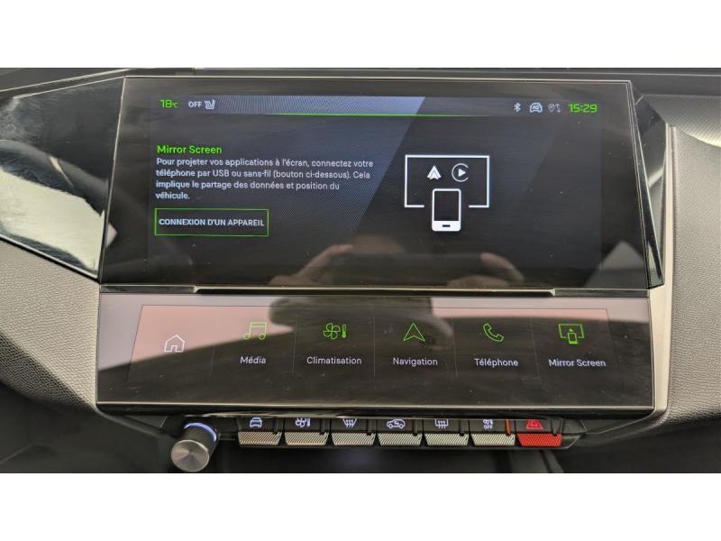 Accès et démarrage mains libresAccoudoir central avec rangement et porte gobeletAide au stationnement ARAide au stationnement AVAir conditionné automatique bi-zoneAirbags frontaux conducteur et passager adaptatifs (passager neutralisable par clé), airbags latéraux conducteur et passager AV.airbags rideaux de tête aux places AV/ARBanquette AR rabattable 2/3-1/3Commutation automatique des feux de routeDétection de sous gonflageDirection assistée électriqueESP avec fonction Hill Assist (Aide au démarrage en pente)Essuie-vitre AV à déclenchement automatiqueFeux AR spécifiques avec allumage dynamique griffe à griffeFeux diurnes à LED sous projecteursFixations ISOFIX aux 2 places latérales AR (Top Tether)Fonction BluetoothFonction DAB (Radio Numérique Terrestre)Fonction Mirror Screen (Apple CarPlay / Android Auto ) sans filFrein de stationnement électriqueJantes alliage 19" diamantées GRAPHITELève-vitres AV/AR électriques et séquentiels avec antipincementNavigation connectée avec écran central tactile 10'' et i-Toggles virtuels personnalisablesPédalier Sport et repose pied en aluminiumPack Drive Assist Plus : Régulateur de vitesse adaptatif avec fonction Stop&Go Conduite semi-autonome (niveau 2) Aide au maintien de la position dans la voiePack Safety Plus : Alerte attention conducteur Reconnaissance étendue des panneaux de signalisation et préconisation de vitesse Alerte active de franchissement involontaire de ligne et bas côté Freinage d'urgence automatique de jour et de nuit (caméra & raPare-brise teinté feuilleté acoustiquePeugeot Connect SOSPeugeot i-Cockpit avec instrumentation numérique 10" personnalisableProjecteurs Peugeot Matrix LED Technology Éclairage adaptatif en fonction des conditions extérieures et de la circulationRéglage lombaire du siège conducteurRétroviseur intérieur photosensibleRétroviseurs extérieurs électriques, dégivrants et rabattables électriquement, avec répétiteurs de feux clignotants à LEDSélecteur mode de conduite Eco et SportSeuils de portes AV aluminiumSièges AV réglables en hauteurSystème audio 6 HPVitres AV feuilletées acoustiquesVitres latérales AR et lunette AR chauffante temporisée surteintéesVolant chauffantVolant cuir perforéVolet motorisé avec accès bras chargés