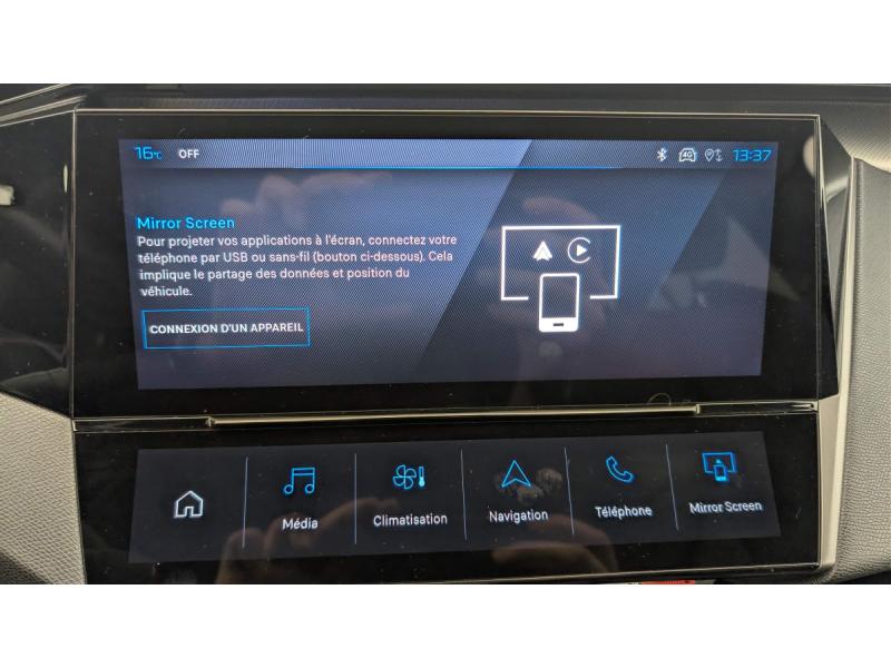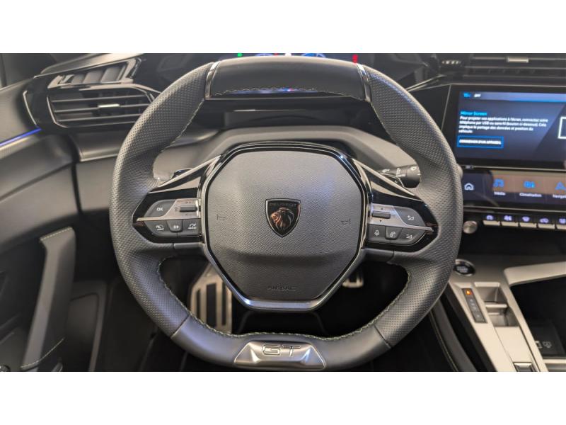 Accès et démarrage mains libresAccoudoir central avec rangement et porte gobeletActive Safety Brake piloté par caméra et radarAide au stationnement ARAide au stationnement AVAir conditionné automatique bi-zoneAirbags frontaux conducteur et passager adaptatifs (passager neutralisable par clé), airbags latéraux conducteur et passager AV.airbags rideaux de tête aux places AV/ARBanquette AR rabattable 2/3-1/3Câble de recharge mode 2 (10A, 2,3kW) pour prise domestique standardChargeur embarqué 3,7kWCommutation automatique des feux de routeDétection de sous gonflageDirection assistée électriqueESP avec fonction Hill Assist (Aide au démarrage en pente)Essuie-vitre AV à déclenchement automatiqueFeux AR spécifiques avec allumage dynamique griffe à griffeFeux diurnes à LED sous projecteursFixations ISOFIX aux 2 places latérales AR (Top Tether)Fonction BluetoothFonction DAB (Radio Numérique Terrestre)Fonction Mirror Screen (Apple CarPlay / Android Auto ) sans filFrein de stationnement électriqueJantes alliage 19" diamantées GRAPHITEKit de dépannage de pneumatiqueLève-vitres AV/AR électriques et séquentiels avec antipincementNavigation connectée avec écran central tactile 10'' et i-Toggles virtuels personnalisablesPédalier Sport et repose pied en aluminiumPack Drive Assist Plus : Régulateur de vitesse adaptatif avec fonction Stop&Go Conduite semi-autonome (niveau 2) Aide au maintien de la position dans la voiePack Safety Plus : Alerte attention conducteur Reconnaissance étendue des panneaux de signalisation et préconisation de vitesse Alerte active de franchissement involontaire de ligne et bas côté Freinage d'urgence automatique de jour et de nuit (caméra & raPare-brise teinté feuilleté acoustiquePeugeot Connect SOSPeugeot i-Cockpit avec instrumentation numérique 10" 3D personnalisableProjecteurs Peugeot Matrix LED Technology Éclairage adaptatif en fonction des conditions extérieures et de la circulationRéglage lombaire du siège conducteurRétroviseur intérieur électrochrome sans cadreRétroviseurs extérieurs électriques, dégivrants et rabattables électriquement, avec répétiteurs de feux clignotants à LEDReconnaissance vocale en langage naturelSélecteur de modes de conduite (Electric, Hybrid, Sport)Sellerie tri-matière tissu TEP / Tissu New BelomkaSièges AV réglables en hauteurSystème audio 6 HPVitres AV feuilletées acoustiquesVitres latérales AR et lunette AR chauffante temporisée surteintéesVolant avec réglage manuel en hauteur et en profondeurVolant chauffantVolant cuir perforéVolet motorisé avec accès bras chargés