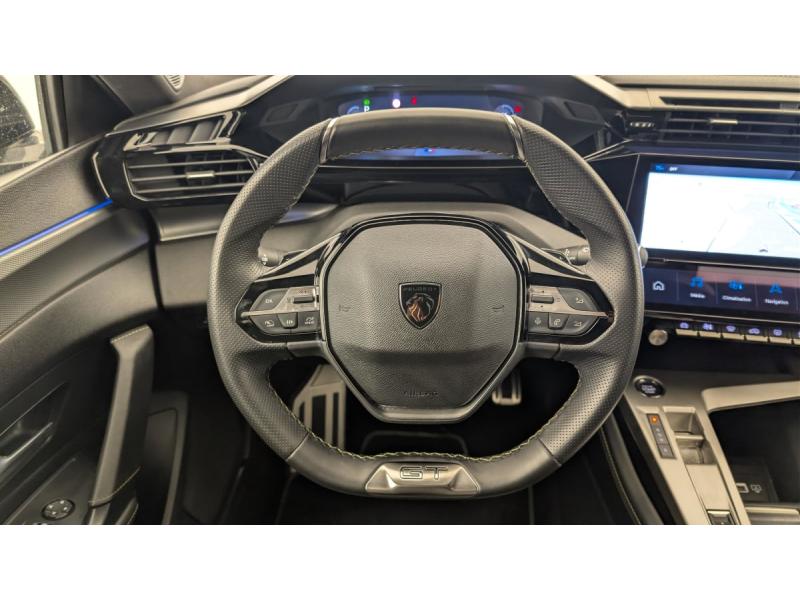 Accès et démarrage mains libresAccoudoir central avec rangement et porte gobeletActive Safety Brake piloté par caméra et radarAide au stationnement ARAide au stationnement AVAir conditionné automatique bi-zoneAirbags frontaux conducteur et passager adaptatifs (passager neutralisable par clé), airbags latéraux conducteur et passager AV.airbags rideaux de tête aux places AV/ARBanquette AR rabattable 2/3-1/3Câble de recharge mode 2 (10A, 2,3kW) pour prise domestique standardChargeur embarqué 3,7kWCommutation automatique des feux de routeDétection de sous gonflageDirection assistée électriqueESP avec fonction Hill Assist (Aide au démarrage en pente)Essuie-vitre AV à déclenchement automatiqueFeux AR spécifiques avec allumage dynamique griffe à griffeFeux diurnes à LED sous projecteursFixations ISOFIX aux 2 places latérales AR (Top Tether)Fonction BluetoothFonction DAB (Radio Numérique Terrestre)Fonction Mirror Screen (Apple CarPlay / Android Auto ) sans filFrein de stationnement électriqueJantes alliage 19" diamantées GRAPHITEKit de dépannage de pneumatiqueLève-vitres AV/AR électriques et séquentiels avec antipincementNavigation connectée avec écran central tactile 10'' et i-Toggles virtuels personnalisablesPédalier Sport et repose pied en aluminiumPack Drive Assist Plus : Régulateur de vitesse adaptatif avec fonction Stop&Go Conduite semi-autonome (niveau 2) Aide au maintien de la position dans la voiePack Safety Plus : Alerte attention conducteur Reconnaissance étendue des panneaux de signalisation et préconisation de vitesse Alerte active de franchissement involontaire de ligne et bas côté Freinage d'urgence automatique de jour et de nuit (caméra & raPare-brise teinté feuilleté acoustiquePeugeot Connect SOSPeugeot i-Cockpit avec instrumentation numérique 10" 3D personnalisableProjecteurs Peugeot Matrix LED Technology Éclairage adaptatif en fonction des conditions extérieures et de la circulationRéglage lombaire du siège conducteurRétroviseur intérieur électrochrome sans cadreRétroviseurs extérieurs électriques, dégivrants et rabattables électriquement, avec répétiteurs de feux clignotants à LEDReconnaissance vocale en langage naturelSélecteur de modes de conduite (Electric, Hybrid, Sport)Sellerie tri-matière tissu TEP / Tissu New BelomkaSièges AV réglables en hauteurSystème audio 6 HPVitres AV feuilletées acoustiquesVitres latérales AR et lunette AR chauffante temporisée surteintéesVolant avec réglage manuel en hauteur et en profondeurVolant chauffantVolant cuir perforéVolet motorisé avec accès bras chargés
