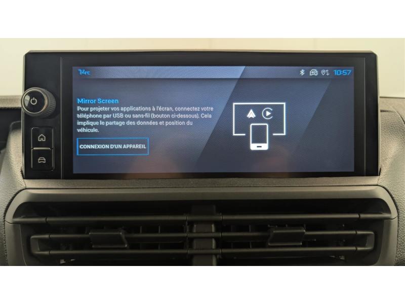 ABS, AFU, ASR, ESP avec aide au démarrage en penteAirbags frontaux conducteur et passagerAllumage automatique feux de croisement et des essuie-vitres AVBoitier télématique (appel d'urgence)Climatisation manuelle régulée en températureCloison pleine tôléeCommandes au volant du système audio et du régulateur-limiteur de vitesseDétection de sous-gonflage indirecteGarnissage Tissu bi-ton noir-grisJantes tôle 16'' grises avec cabochon noirLève vitres AV électriques impulsionnelsPack Sécurité : Reconnaissance des panneaux de vitesse et recommandation Commutation automatique des feux de route Freinage automatique d'urgence avec alerte risque de collision Assistance au maintien dans la voie Détection inattention conducteurPare-brise feuilleté acoustiquePorte latérale coulissante droitePortes AR battantes tôlées 50/50 à ouverture à 180°Projecteurs halogènes (H15) avec feux diurne intégréRégulateur limiteur de vitesseRétroviseurs extérieurs électriques et chauffantsRevêtement de sol TPO dans l'habitacleSiège conducteur avec appui-tête réglable en hauteur et avec accoudoir Réglage : longueur, inclinaison, réhausse et lombaireVolant réglable en hauteur et en profondeur