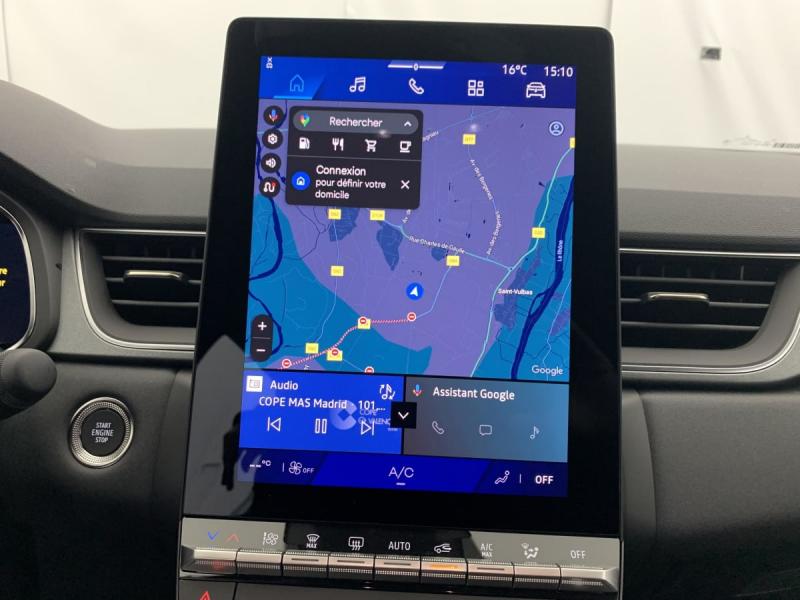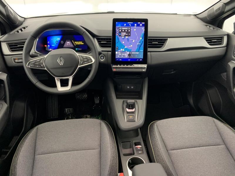 Aide au freinage d'urgence (A.F.U.)Aide au parking AV/AR et latéralAirbag passager déconnectableAirbags frontaux conducteur et passager adaptatifAirbags latéraux AVAlerte détection de fatigueAlerte de distance de sécuritéAlerte franchissement de ligne et assistant maintien dans la voieAllumage automatique des essuie-glacesAntenne RequinAntiblocage des roues ABSAppel d'urgenceAppuie-têtes ARBanquette AR coulissante et rabattable 1/3 - 2/3Boîte de vitesse automatique 4 rapportsBoitier connect AIVCCaméra de reculCarte "Mains libres"Cartographie StandardCeinture centrale AR 3 pointsChargeur smartphone à inductionClimatisation automatiqueCompartiment de coffreCondamnation centralisée des portesContrôle de la traction (TCS)Direction assistéeEclairage AV et AR Full LED Pure VisionFeux AR 3DFeux AR avec signature lumineuse YFeux de stop à LEDFiltre à particulesFrein de parking électrique avec fonction Auto-HoldHarmonie noireIndicateur de changement de vitesseJantes alliage 18'' diamantées GravityLève-vitres AV électriques à impulsionLunette AR chauffanteMiroirs de courtoisie rétroéclairésMy Safety switch (raccourci vers configuration personnalisée des aides à la conduite)Poignées de portes ton caissePrédisposition éthylotestRégulateur de vitesse adaptatifRépétiteurs latéraux de changement de directionRétroviseur intérieur chrome framelessRétroviseurs extérieurs dégivrants, réglables et rabattables électriquementReconnaissance des panneaux de signalisationRenault Multi-senseSellerie TechnoSiège AV réglable en hauteurSystème de contrôle de trajectoire ESC avec aide au démarrage en côteSystème de freinage d'urgence avancéSystème de surveillance de la pression des pneusSystème ISOFIX (i-Size) aux places latérales AR et passager AVSystème multimédia openR link 10.4" avecGoogle intégréTémoin d'oubli de ceinture de sécuritéTableau de bord avec écran numérique et personnalisable 10"Vitres latérales et AR surteintéesVolant tep