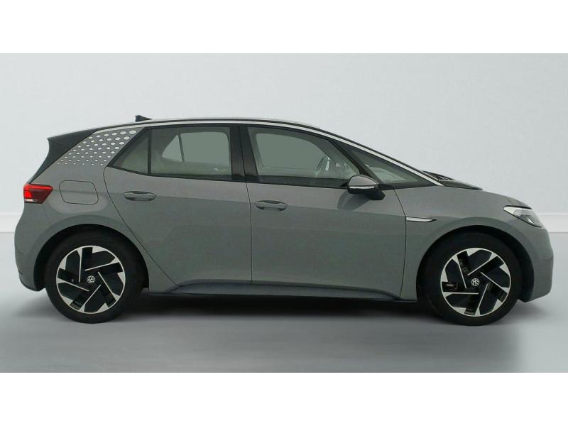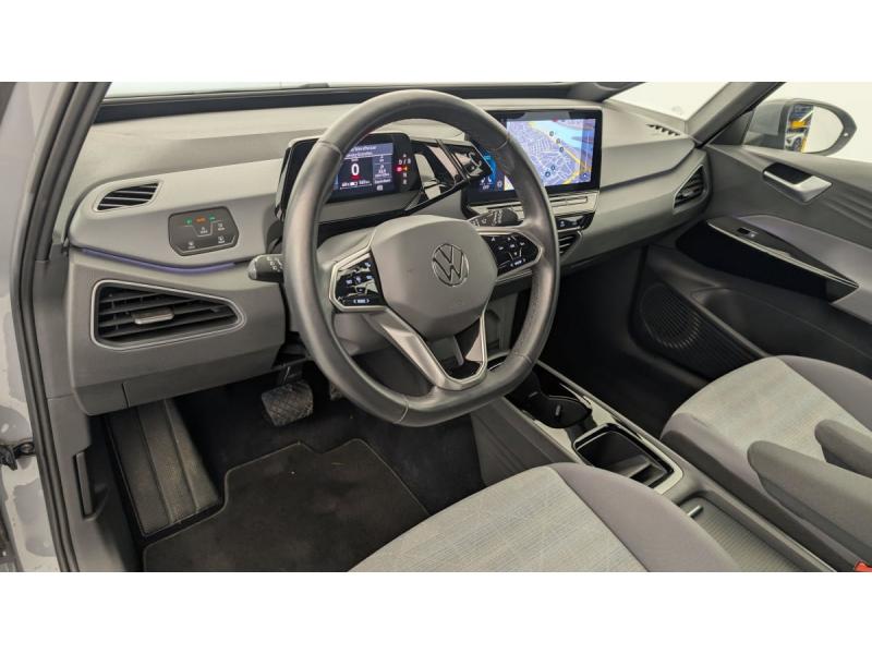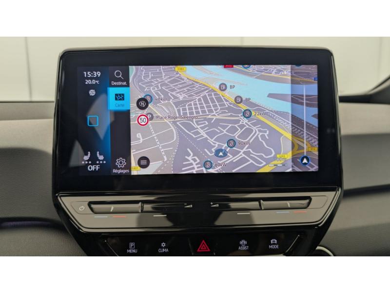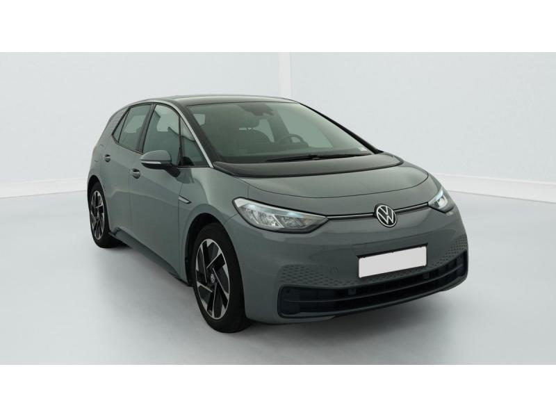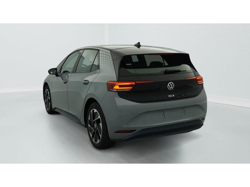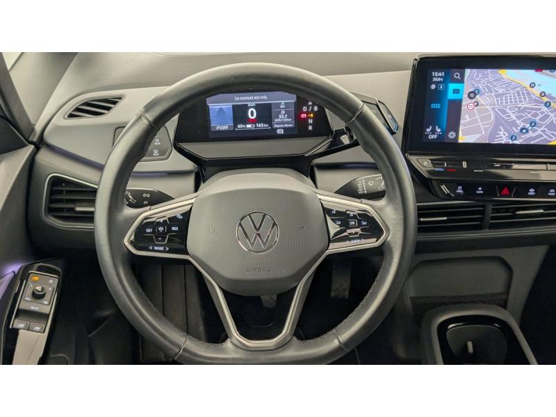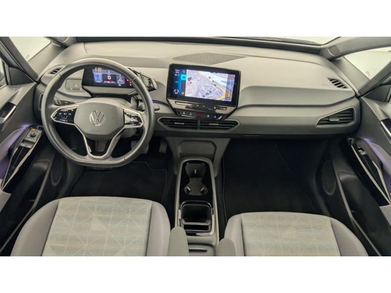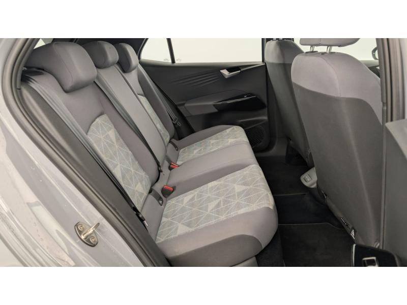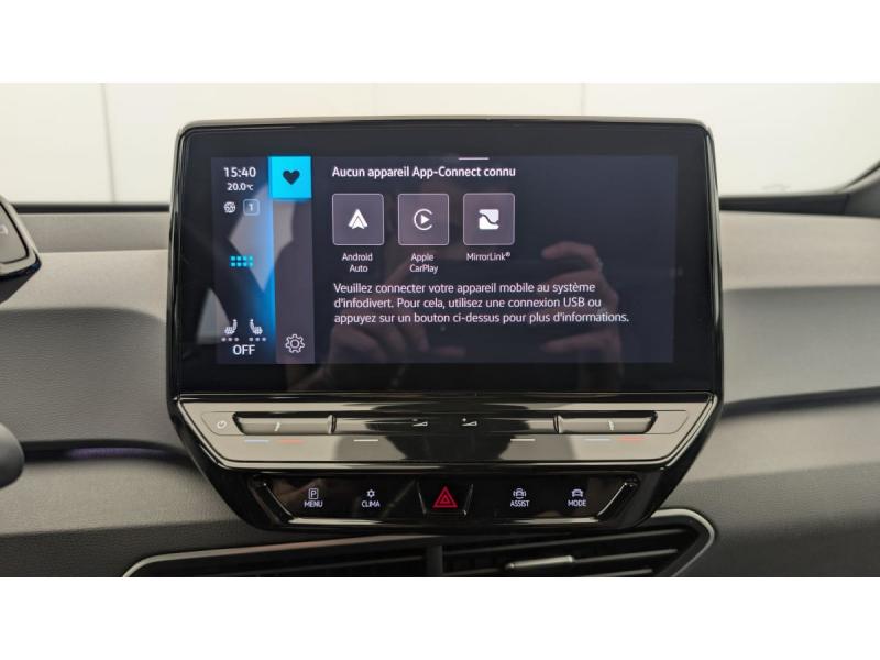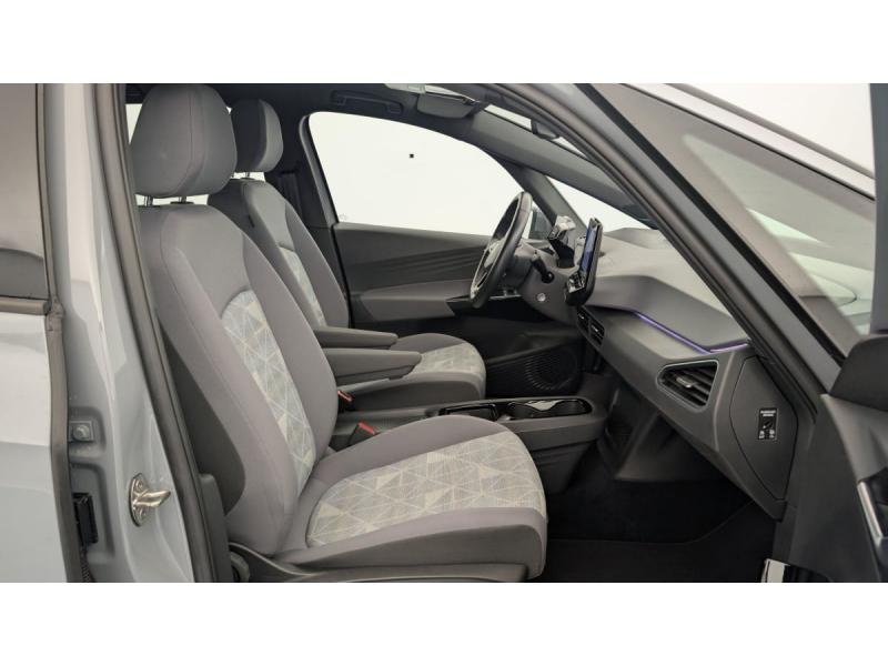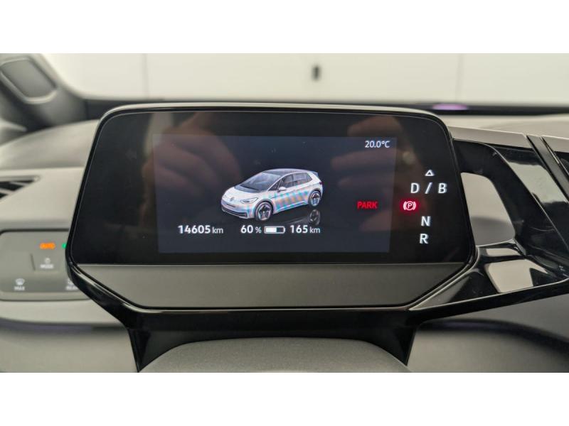 2 ports USB-C à l'AV (recharge et data)ACC : Régulateur de vitesse adaptatif et prédictif (avec limiteur de vitesse)Accoudoirs pour les sièges AVAirbags frontaux AV conducteur et passager (Airbag passager désactivable par clé), Airbags latéraux à l'AV, airbags interactif à l'AV et avec airbags de tête AV/AR, Airbag central situé sur le côté droit du siège conductAlerte de perte de pression des pneusApp-Connect sans fil (en fonction du téléphone compatible) pour Apple CarPlay, Android Auto et Mirror Link (avec fil).Appuis-tête réglables en hauteur sur les sièges AV et ARBanquette AR 2/3 1/3 (3 personnes)Câble de recharge Mode 3 - Type 2 pour borne de recharge (32 A)Climatiseur 1-Zone "Air Care Climatronic" avec mode recyclage de l'air ambiantCommande vocale intuitive -"Bonjour ID." - Certaines fonctions peuvent être exécutées grâce à la commande vocaleDétecteur de fatigueDispositif électronique de démarrage sans clé "Keyless-Go": Démarrage possible avec une simple pression sur la pédale de freinEclairage d'ambiance personnalisable (10 couleurs)Ecran central tactile de 10'' personnalisableFrein de stationnement électromécanique avec fonction d'immobilisation en pente Auto-HoldFront Assist - Système de surveillance périmétrique avec fonctions de freinage d'urgence en ville et détection des piétonsID. Display de 5,3'': L'ID. Display est un combiné d'instruments numérique doté d'un afficheur couleur TFT à haute résolution. En plus du tachymètre numérique, il est possible d'afficher des informations supplémentID.Light: L'ID. Light est un concept d'éclairage intelligent qui vous fournit des informations complémentaires sur l'état du véhicule et sur la situation de conduiteIntérieur standard Gris - NoirKit de dépannage : compresseur 12V et produit d'étanchéité de pneuLane Assist - Assistant au maintien dans la voie avec correction de trajectoireOeillets d'arrimage ISOFIX (dispositif pour fixation de 2 sièges-enfants sur la banquette AR)Pack Confort : Rétroviseur intérieur jour/nuit automatique Sièges AV chauffants Volant chauffant Console centrale rétro-éclairée avec volet occultant Rétroviseurs extérieurs réglables, rabattables et dégivrants électriquemPack Infotainment : Système de Navigation & Infotainment "Discover Pro" avec "Services de streaming et radio via Internet" Interface téléphonique Bluetooth Confort avec fonction de chargement inductive (en fonction du téléphone compatible)Pack Visibilité : Allumage automatique des feux Capteur de pluie avec essuie-glace automatiquePark Pilot: Système d'aide au stationnement AV/AR avec signaux sonores et visualisation de la distance des obstacles sur l'écranPrise 12 V dans le coffreProjecteurs LED et feux AR à LEDRéception de radio numérique DAB+Sellerie en tissuSièges AV réglables manuellement en profondeur et inclinables. Siège conducteur réglable en hauteurSign Assist - Système de détection de la signalisation routière Le système de détection de la signalisation routière détecte les panneaux de signalisation standard à l'aide d'une caméra située dans le pied du rétrSystème de son 4+1 haut-parleursTableau de bord Gris/NoirVitres AV/AR électriques avec dispositif anti-pincementVolant à réglage mécanique en hauteur et en longueurVolant capacitif en cuir multifonction