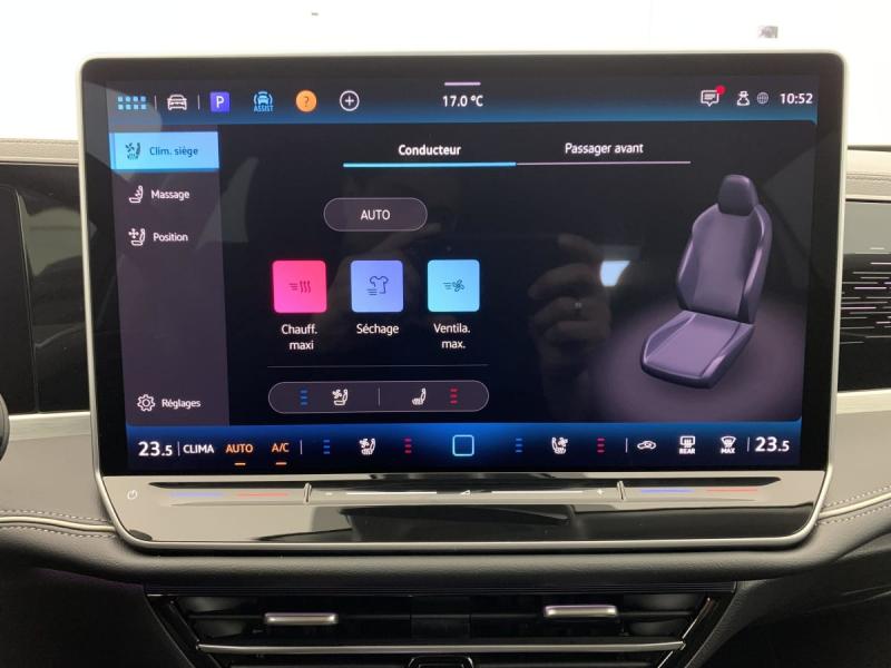 2 USB AV/ARAccoudoir central ARAirbag rideauxAirbags de tête pour passagers AV/AR avec Airbags latéraux AVAirbags frontaux AV avec désactivation airbag passager AVAlarme antivolAllumage automatique des projecteurs avec feux de jour à LED et fonction "Coming/Leaving Home"App-Connect sans filApplications décoratives brillant sur le tableau de bord et les revêtements de portesAssistant de freinage d'urgence Front Assist avec système de détection des piétons et cyclistesAssistant de maintien sur la voie Lane AssistBandeau lumineux AV/AR avec logo lumineux ARClimatisation automatique tri-zoneDétecteur d'angles morts "Side Assist" avec assistance de sortie de stationnementDétecteur de fatigueDétecteur de pluieDynamic Light Assist: Régulation du faisceau lumineux permettant un usage permanent des feux de route tout en préservant les zones qui risquent d'éblouir les autres automobilistes (à partir de 60 km/h)Eclairage d'ambiance 30 couleursESPFeux AR à LED avec clignotants AR défilantsFrein de stationnement électrique avec fonction Auto-HoldInterface Bluetooth pour téléphone portableInterface téléphonique avec fonction de chargement à inductionJantes en alliage léger 17" "Napoli"Keyless Access: Système de verrouillage/dévérrouillage sans clé et démarrage avec bouton Start/StopMiroirs de courtoisie éclairés dans les pare-soleilsOeillets de retenue ISOFIX pour sièges pour enfantsOuverture et fermeture du coffre mains-libres "Easy Open/Easy Close"Pack Cargo : Prise 230V dans le coffre Plancher variable pour le compartiment à bagagesPark Assist Pro: Système d'assistance aux stationnement en créneau et en bataille, inclus radars de stationnement AV/ARPrise 12V dans la console centralePrise 12V dans le coffre à bagagesProjecteurs IQ.Light - Matrix LED: Éclairage à technologie LED avec adaptation dynamique du faisceau lumineux en fonction des sources lumineuses en présence afin de ne pas éblouir les différents usagers de la route.Réception de radio numérique DAB+Régulateur de vitesse adaptatif et prédictif ACC avec limiteur de vitesseRétroviseur intérieur jour/nuit automatiqueRétroviseurs extérieurs réglables électriquement et dégivrantsRétroviseurs extérieurs rabattables électriquementRampes de pavillonReconnaissance des panneaux de signalisationRevêtement de porte en style cuirSellerie en Microfleece "ArtVelours"Service d'appel d'urgence e-CallSeuils de porte AV/AR en acier inoxydableSiège AV massant et ventiléSièges AV chauffantsSystème de contrôle de l'état des pneusTableau de bord Digital CockpitVéhicule livré sans Kit anti crevaison ni roue de secoursVitres AR surteintéesVolant cuir multifonctions chauffant avec palettes
