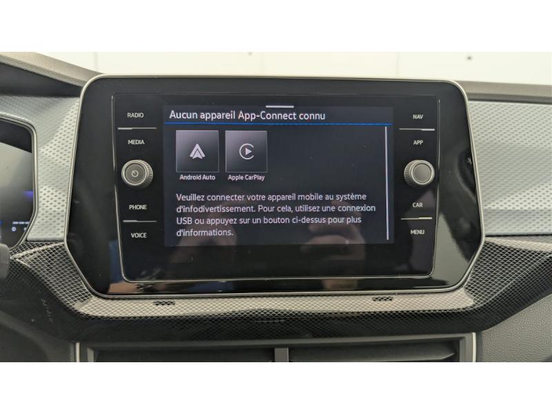 2 ports USB-C de recharge à l'ARAccoudoir central AVAide au démarrage en côte "Hill-Hold"Airbags frontaux AV conducteur et passagerAirbags rideaux AV/ARAlerte de perte de pression des pneusApp-Connect sans fil: affichage et contrôle via l'écran tactile de la voiture, du contenu, des fonctions et des applications compatibles présents sur le Smartphone (compatibilité avec les systèmes Apple CarPlay et Android Auto). Fonction sans fil uniquement disAssistant de conduite semi-autonome "Travel Assist"Banquette AR coulissante sur 14 cmCapteur de pluie avec essuie-glace automatiqueChargeur de smartphone par inductionDigital Cockpit : combiné d'instruments entièrement digital de 8"Direction assistéeDossier de banquette AR rabattable 2/3 -1/3Fatigue Detection : système de détection de fatigue du conducteur qui analyse le comportement du conducteur et recommande un temps de repos par l'apparition d'un message visuel et sonoreFeux AR de brouillardInterface téléphone BluetoothKit de dépannage : compresseur 12 V et produit d'étanchéité de pneuLane Assist: Assistant de maintien de trajectoire qui corrige, dans la limite du système, le mouvement du volant avant que le véhicule dépasse involontairement la bande de roulement. Système actif à partir de 65 km/hOeillets d'arrimage ISOFIX (dispositif pour fixation de 2 sièges enfants sur les places extérieures de la banquette AR et 1 siège enfant sur le siège passager AV)Ordinateur de bord multifonctionPark Pilot: radars d'aide au stationnement AV/AR avec signaux acoustiques en cas d'obstaclesPréparation pour "VW Connect" et "VW Connect Plus"Projecteurs principaux LEDRéception radio numérique DAB+Régulateur de vitesse adaptatif ACC avec limiteur de vitesseRétroviseur intérieur jour/nuit automatiqueRétroviseurs extérieurs réglables, rabattables et dégivrables électriquementRampes de pavillon noiresSellerie tissuSiège passager AV rabattableSièges conducteur et passager réglables en hauteurSystème Front Assist avec fonction de secours en ville et détection des piétons: contribuant à la prévention des collisions, ce système freine automatiquement le véhicule en cas de détection d'obstacle aussi bien en ville que sur autorouteSystème Start/Stop avec dispositif de récupération de l'énergie au freinageVitres AV/AR électriquesVolant multifonction cuir