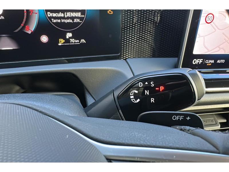 2 prises de chargement USB-C dans la console centrale AR, capacité de charge jusqu'à 45W2 prises USB-C à l'AV, et prise 12 V dans la console centraleAccoudoir central AVAide au stationnement "Park Assist"Airbag conducteur et passager AV avec désactivation de l'airbag du passager AVAirbags rideaux et latéraux AV/AR, airbag centralAllumage automatique des projecteurs avec feux de jour à LED et fonction "Coming Home/Leaving Home"App-Connect sans filAppui lombaire, réglage pneumatique des 2 côtésAssistant d'intersection: système de surveillance périmétrique des intersections. Ce système freine automatiquement le véhicule en cas d'urgence lors d'une intersectionAssistant de freinage d'urgence Front Assist avec système de détection des piétons et cyclistesAssistant de maintien sur la voie Lane AssistAvertissement de sortie de véhicule: lorsque le conducteur veut sortir du véhicule mais qu'un cycliste ou véhicule s'approche par derrière, le conducteur est averti (le témoin d'aide au changement de voie s'allume sur le rétroviseur, un sBanquette AR coulissante et dossier divisés, rabattablesClimatisation "Air Care Climatronic" 3 zonesCommande vocale IDADémarrage sans clé "Keyless GO"Détecteur de fatigueDétecteur de pluieDétection d'angles morts "Side Assist" avec assistance de sortie de stationnementDéverrouillage à distance pour le dossier de banquette ARDispositif start/stopDossier de siège passager AV entièrement rabattableDrive Experience Control: Sélecteur de profil de conduite avec écran OLED tactile - Permet d'ajuster le volume, le profil de conduite ainsi que les "Atmosphères" - Appuyer sur le sélecteur pour afficher les profils de conduite, passez votre doigt sur lEclairage d'ambiance 10 couleursFrein de stationnement électronique y compris fonction Auto HoldInterface Bluetooth pour téléphone portableInterface téléphonique "Comfort" avec fonction de chargement inductive pour téléphoneKit de crevaison - Compresseur 12V et produit de colmatage des pneusLight Assist: Activation ou désactivation automatique des feux de route en fonction des sources lumineuses en présence (dès 60 km/h)Limiteur de vitesse prédictifMiroirs de courtoisie éclairés dans les pare-soleilsOeillets de retenue ISOFIX pour sièges pour enfants sur sièges AR extérieurs et sur siège passager AV, compatibles i-SizePlancher de coffrePrise 12V dans le coffre à bagagesProjecteurs AV à LEDRéception de radio numérique (DAB+)Régulateur de vitesse adaptatif et prédictif ACCRétroviseur intérieur à réglage jour/nuit automatiqueRétroviseurs extérieurs réglables, rabattables électriquement et dégivrantsRadars de stationnement AV/ARRampes de pavillon noiresSellerie en tissuSièges AV réglables en hauteurSystème de contrôle de l'état des pneusSystème de détection de la signalisation routièreSystème Navigation & Infotainment "Discover Media"Tableau de bord Digital Cockpit 10"Verrouillage centralisé, avec radiocommande et 2 clés pliantesVolant multifonction cuir avec palettes au volant