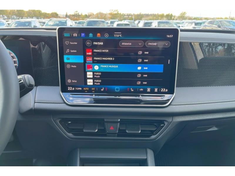 2 prises USB-C à l'AV, et prise 12 V dans la console centraleAccoudoir central AVAide au stationnement "Park Assist"Airbag conducteur et passager AV avec désactivation de l'airbag du passager AVAirbags de tête pour passagers AV/AR avec Airbags latéraux AVAirbags rideaux et latéraux AV/AR, airbag centralAllumage automatique des projecteurs avec feux de jour à LED et fonction "Coming/Leaving Home"App-Connect sans filAppui lombaire, réglage pneumatique des 2 côtésAssistant d'intersection: système de surveillance périmétrique des intersections. Ce système freine automatiquement le véhicule en cas d'urgence lors d'une intersectionAssistant de freinage d'urgence Front Assist avec système de détection des piétons et cyclistesAssistant de maintien sur la voie Lane AssistAvertissement de sortie de véhicule: lorsque le conducteur veut sortir du véhicule mais qu'un cycliste ou véhicule s'approche par derrière, le conducteur est averti (le témoin d'aide au changement de voie s'allume sur le rétroviseur, un sBanquette AR coulissante et dossier divisés, rabattablesCaméra de reculClimatisation "Air Care Climatronic" 3 zonesDétecteur de fatigueDétecteur de pluieDétection d'angles morts "Side Assist" avec assistance de sortie de stationnementDéverrouillage à distance pour le dossier de banquette ARDispositif start/stopDossier de siège passager AV entièrement rabattableDrive Experience Control: Sélecteur de profil de conduite avec écran OLED tactile - Permet d'ajuster le volume, le profil de conduite ainsi que les "Atmosphères" - Appuyer sur le sélecteur pour afficher les profils de conduite, passez votre doigt sur lEclairage d'ambiance 10 couleursEclairage périmétrique avec projection de logoEcran tactile 12,9"Frein de stationnement électronique y compris fonction Auto HoldInterface Bluetooth pour téléphone portableKit de crevaison - Compresseur 12V et produit de colmatage des pneusLight Assist: Activation ou désactivation automatique des feux de route en fonction des sources lumineuses en présence (dès 60 km/h)Limiteur de vitesse prédictifMiroirs de courtoisie éclairés dans les pare-soleilsOeillets de retenue ISOFIX pour sièges pour enfants sur sièges AR extérieurs et sur siège passager AV, compatibles i-SizePlancher de coffrePrise 12V dans le coffre à bagagesRéception de radio numérique (DAB+)Régulateur de vitesse adaptatif et prédictif ACCRétroviseur intérieur à réglage jour/nuit automatiqueRétroviseurs extérieurs réglables électriquement et dégivrantsRadars de stationnement AV/ARSellerie en tissuSièges AV réglables en hauteurSystème de contrôle de l'état des pneusSystème de détection de la signalisation routièreTableau de bord Digital Cockpit 10"Vitres AV électriquesVolant multifonction cuir avec palettes au volant