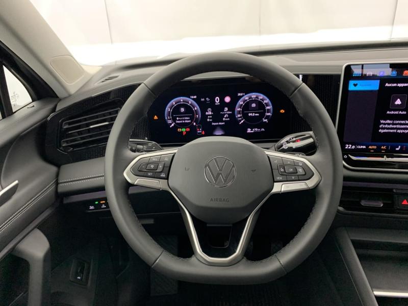 2 prises USB-C à l'AV, et prise 12 V dans la console centraleAccoudoir central AVAide au stationnement "Park Assist"Airbag conducteur et passager AV avec désactivation de l'airbag du passager AVAirbags de tête pour passagers AV/AR avec Airbags latéraux AVAirbags rideaux et latéraux AV/AR, airbag centralAllumage automatique des projecteurs avec feux de jour à LED et fonction "Coming/Leaving Home"App-Connect sans filAppui lombaire, réglage pneumatique des 2 côtésAssistant d'intersection: système de surveillance périmétrique des intersections. Ce système freine automatiquement le véhicule en cas d'urgence lors d'une intersectionAssistant de freinage d'urgence Front Assist avec système de détection des piétons et cyclistesAssistant de maintien sur la voie Lane AssistAvertissement de sortie de véhicule: lorsque le conducteur veut sortir du véhicule mais qu'un cycliste ou véhicule s'approche par derrière, le conducteur est averti (le témoin d'aide au changement de voie s'allume sur le rétroviseur, un sBanquette AR coulissante et dossier divisés, rabattablesCaméra de reculClimatisation "Air Care Climatronic" 3 zonesDétecteur de fatigueDétecteur de pluieDétection d'angles morts "Side Assist" avec assistance de sortie de stationnementDéverrouillage à distance pour le dossier de banquette ARDispositif start/stopDossier de siège passager AV entièrement rabattableDrive Experience Control: Sélecteur de profil de conduite avec écran OLED tactile - Permet d'ajuster le volume, le profil de conduite ainsi que les "Atmosphères" - Appuyer sur le sélecteur pour afficher les profils de conduite, passez votre doigt sur lEclairage d'ambiance 10 couleursEclairage périmétrique avec projection de logoEcran tactile 12,9"Frein de stationnement électronique y compris fonction Auto HoldInterface Bluetooth pour téléphone portableKit de crevaison - Compresseur 12V et produit de colmatage des pneusLight Assist: Activation ou désactivation automatique des feux de route en fonction des sources lumineuses en présence (dès 60 km/h)Limiteur de vitesse prédictifMiroirs de courtoisie éclairés dans les pare-soleilsOeillets de retenue ISOFIX pour sièges pour enfants sur sièges AR extérieurs et sur siège passager AV, compatibles i-SizePlancher de coffrePrise 12V dans le coffre à bagagesProjecteurs AV à LEDRéception de radio numérique (DAB+)Régulateur de vitesse adaptatif et prédictif ACCRétroviseur intérieur à réglage jour/nuit automatiqueRétroviseurs extérieurs réglables électriquement et dégivrantsRadars de stationnement AV/ARSellerie en tissuSièges AV réglables en hauteurSystème de contrôle de l'état des pneusSystème de détection de la signalisation routièreTableau de bord Digital Cockpit 10"Vitres AV électriquesVolant multifonction cuir avec palettes au volant